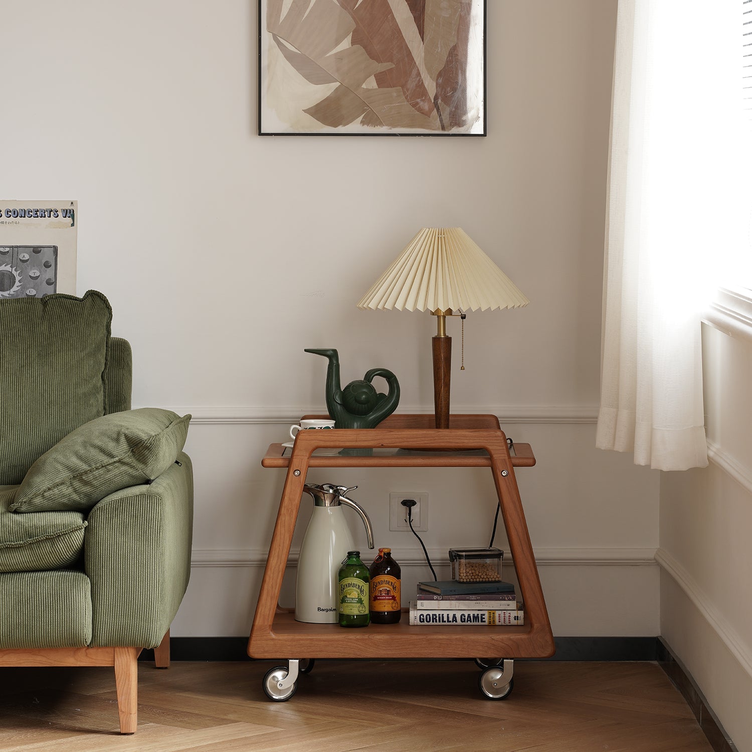 Scandinavian Cherry Wood Wheeled Trolley Side Table YOYO