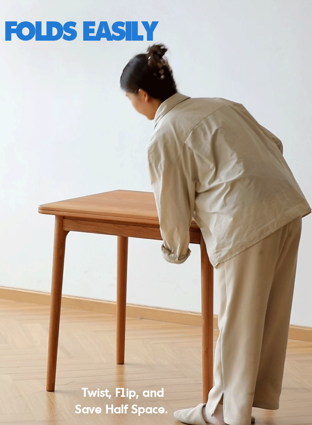 Switch between a compact desk and a full-size dining table in seconds with a smooth, user-friendly folding mechanism