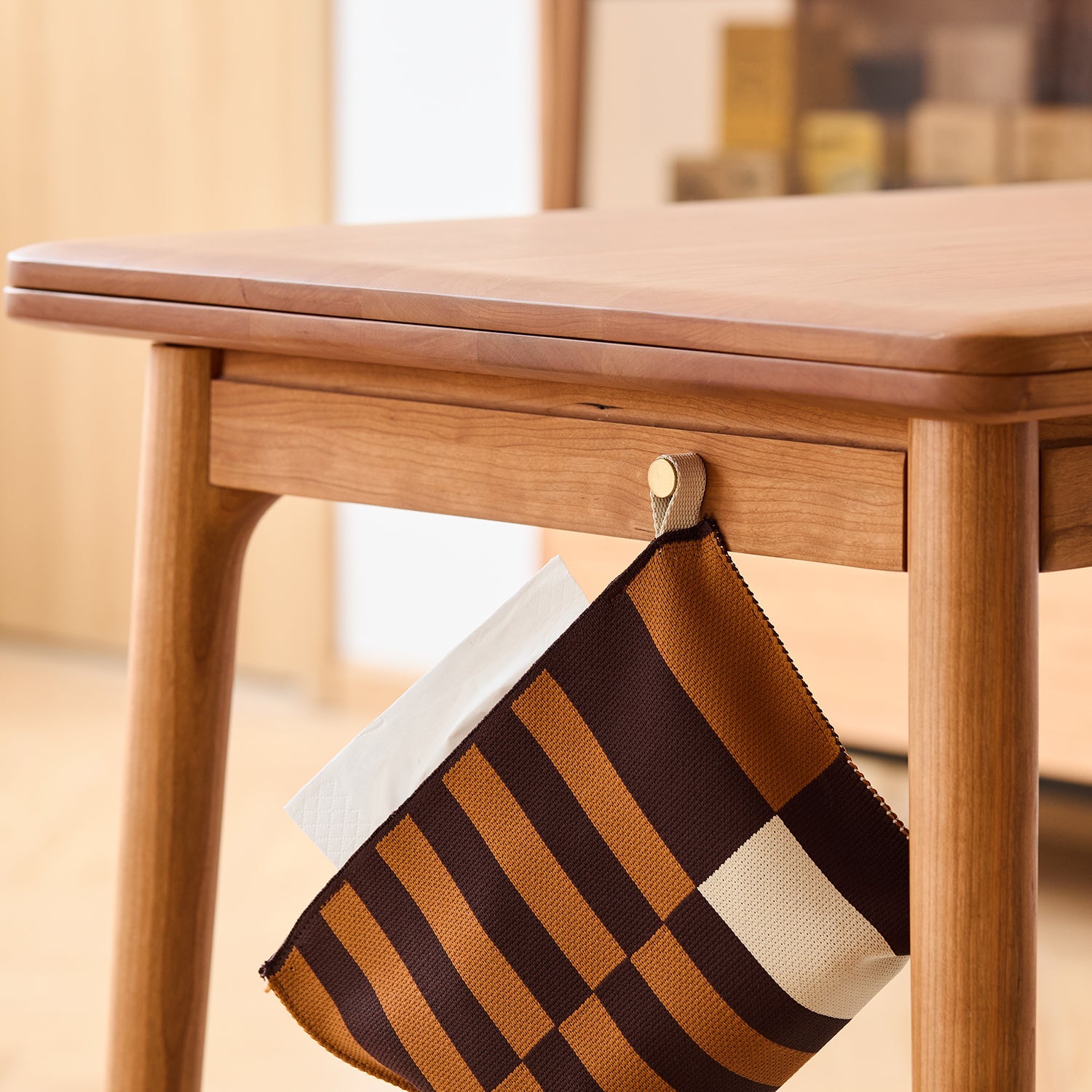 Scandinavian Cherry Wood Dining Table FOREST transforms your space with warm cherry wood elegance, sturdy craftsmanship, and clever folding design, perfect for every home.