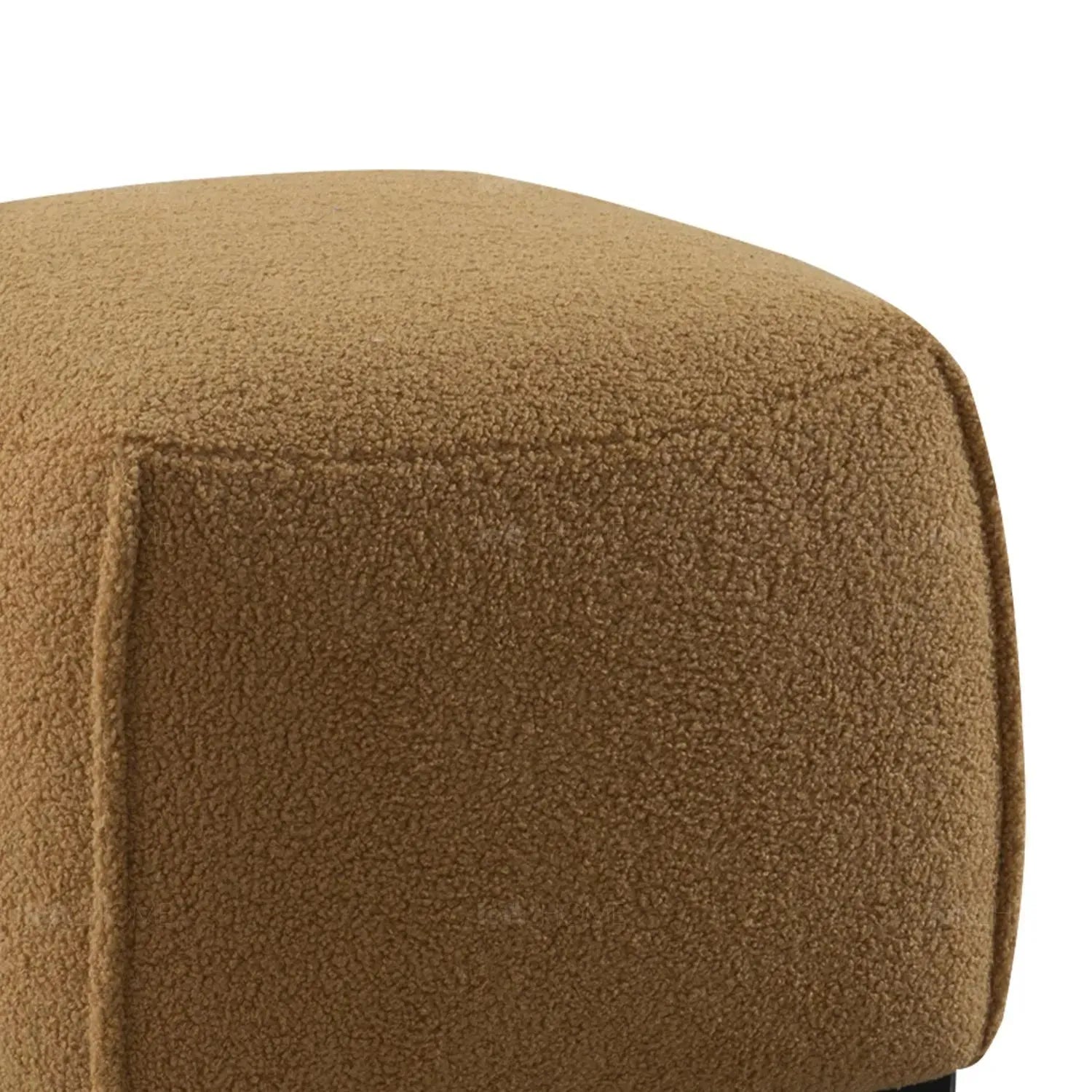 The Ottoman is upholstered in Bright Orange Sherpa Fabric, offering a plush and cozy feel that adds warmth and comfort to any space. This fabric is known for its soft texture and insulating properties, enhancing the Ottoman's appeal.