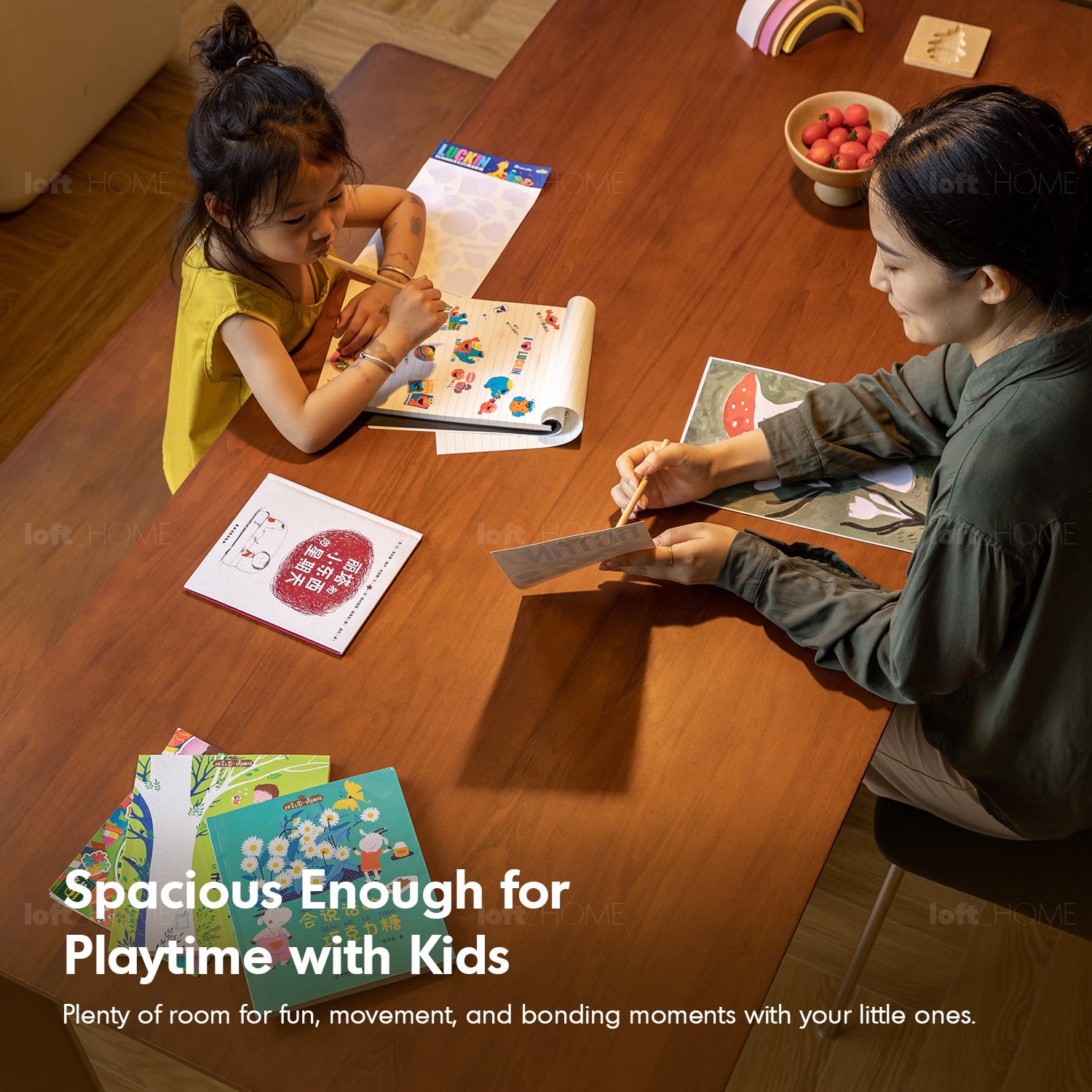 Perfect for family meals, work, or creative activities, offering ample space for gatherings and playtime.
