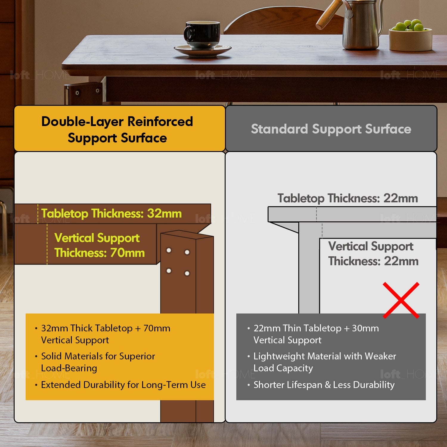 Extra-Thick Tabletop & Vertical Support: