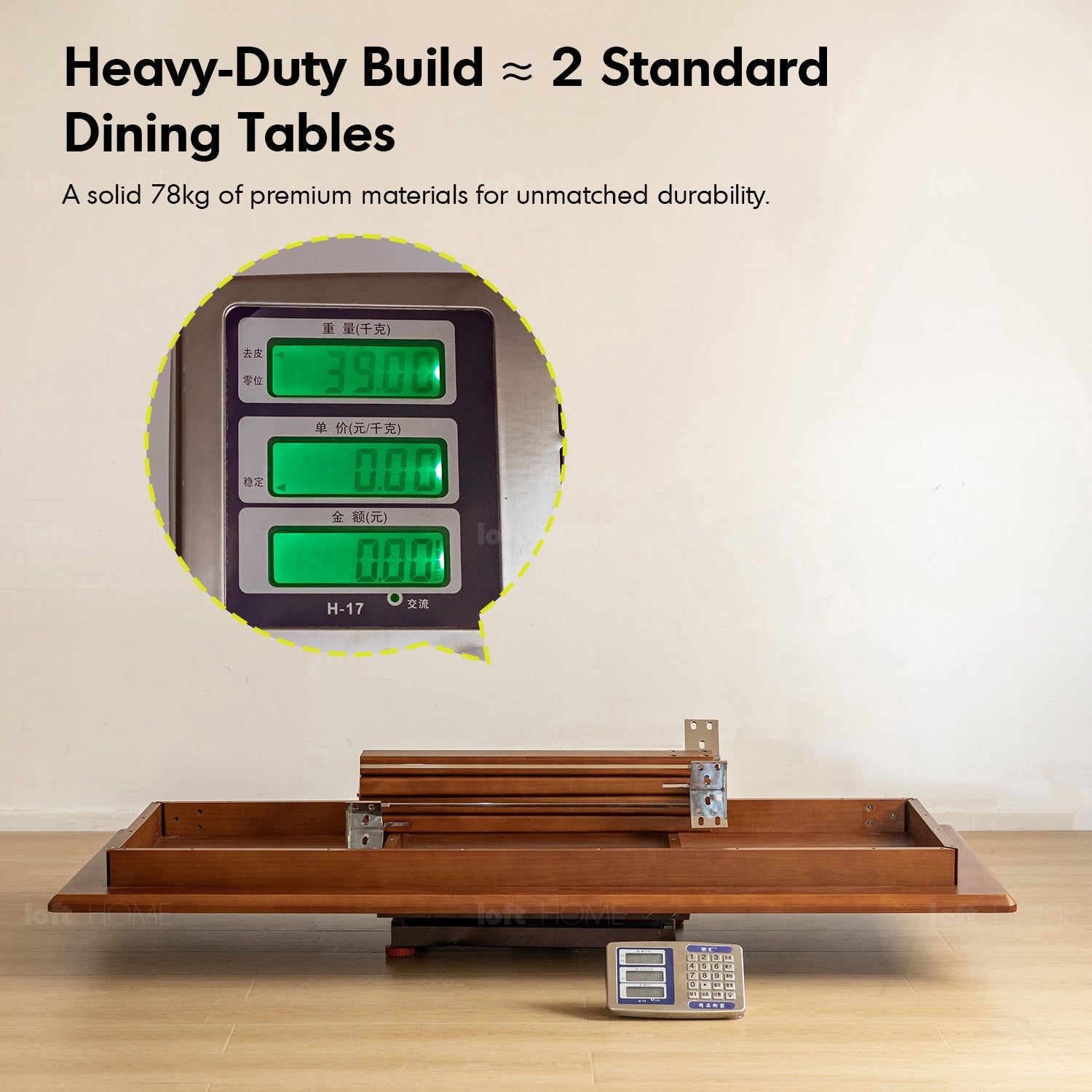 Sturdy elephant-leg design with reinforced structure, able to withstand over 1000kg of weight without wobbling.