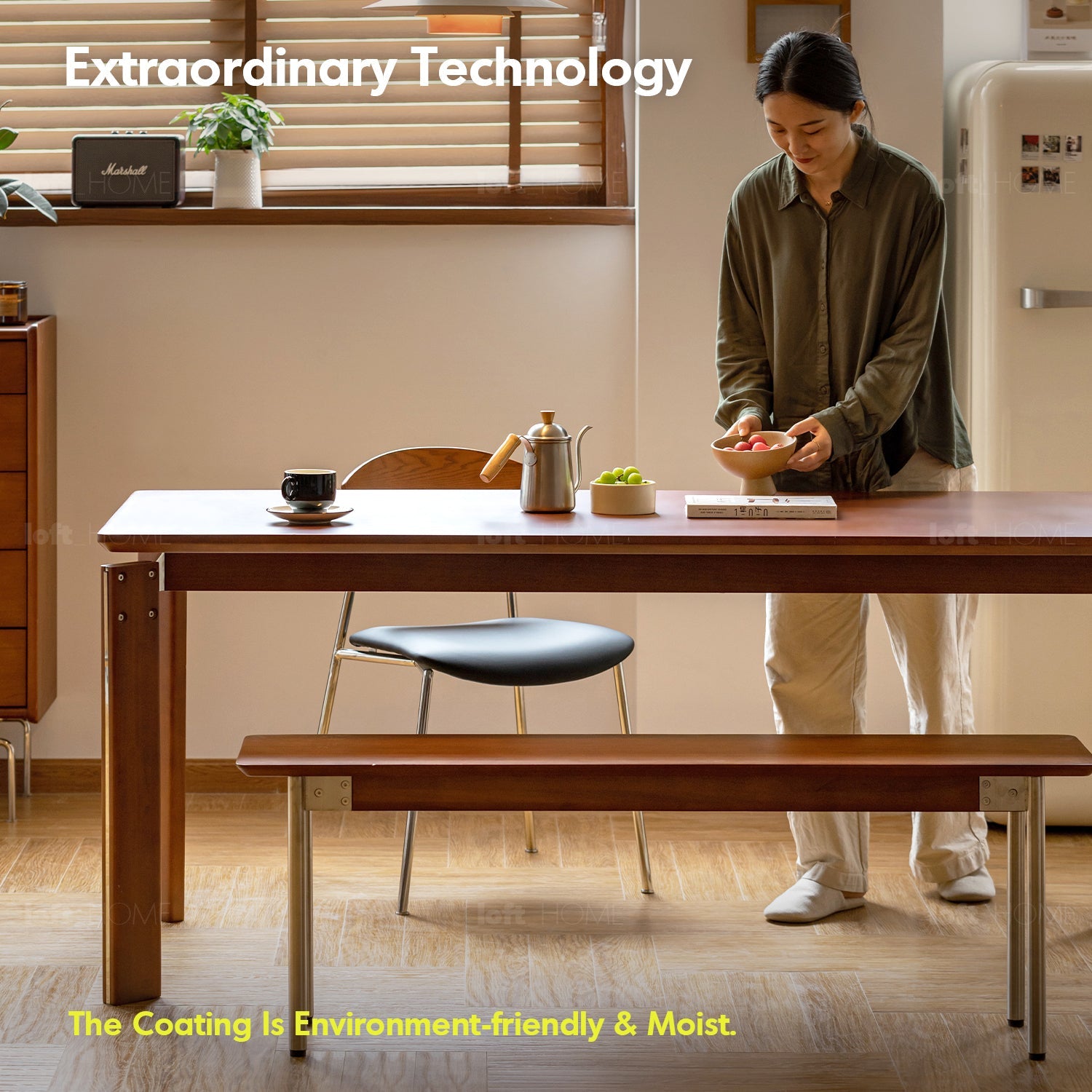 Vintage Boxwood Dining Table ESSAN offers spacious comfort for dining, working, and playtime. With a sturdy design, eco-friendly materials, and timeless elegance, it’s the perfect centerpiece for any home.