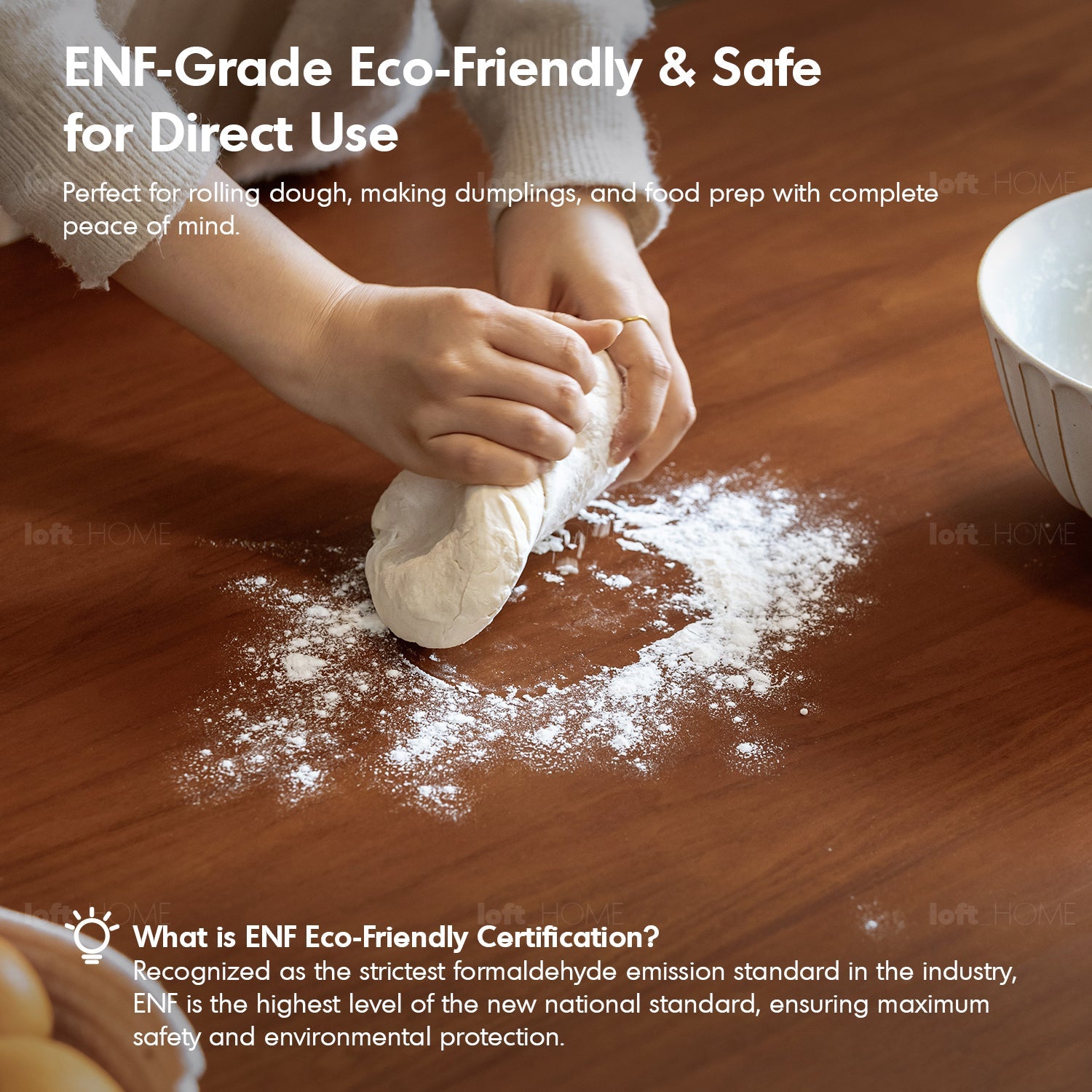 ENF-grade safe for direct food contact, ideal for meal prep or casual dining.