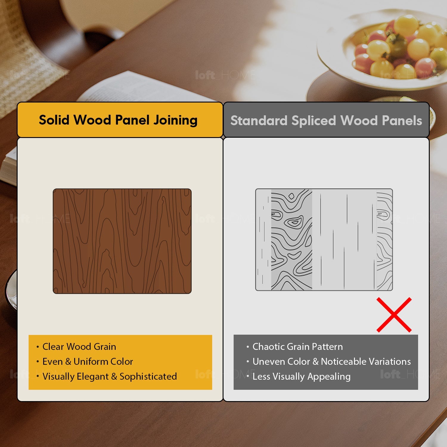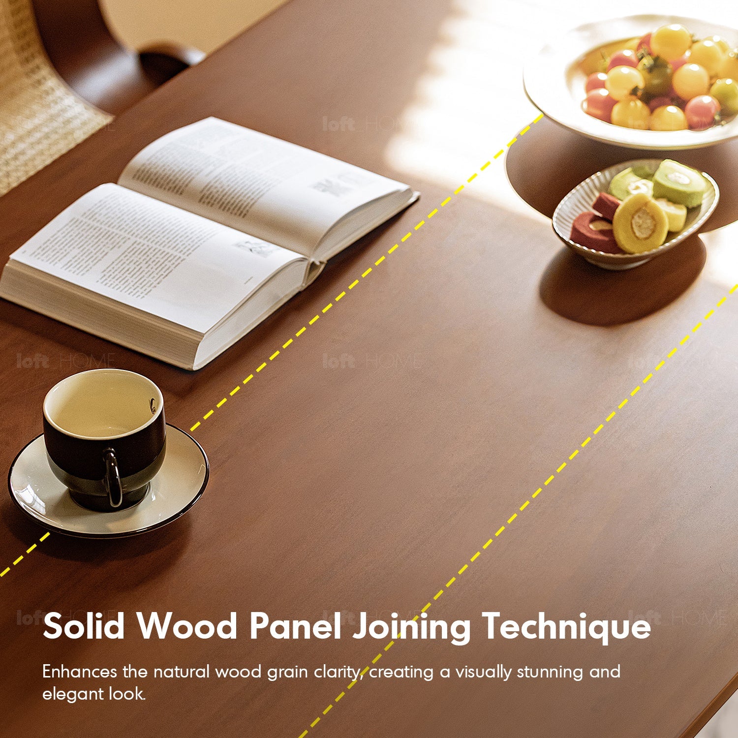 Crafted with a solid wood panel joining technique, enhancing the natural grain and aesthetic appeal.
