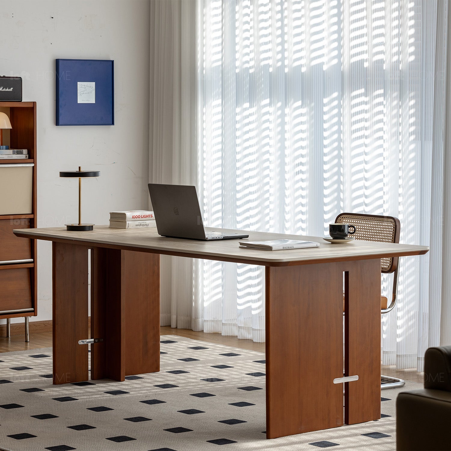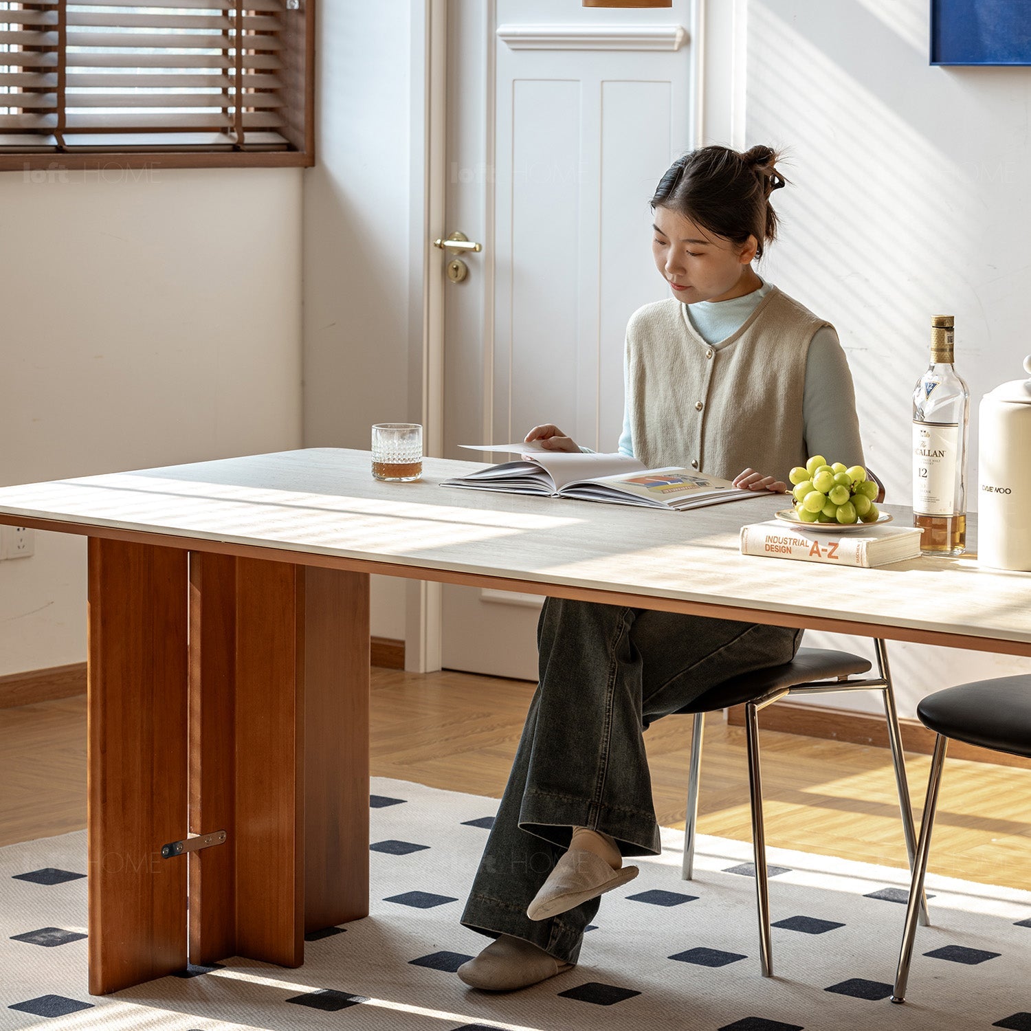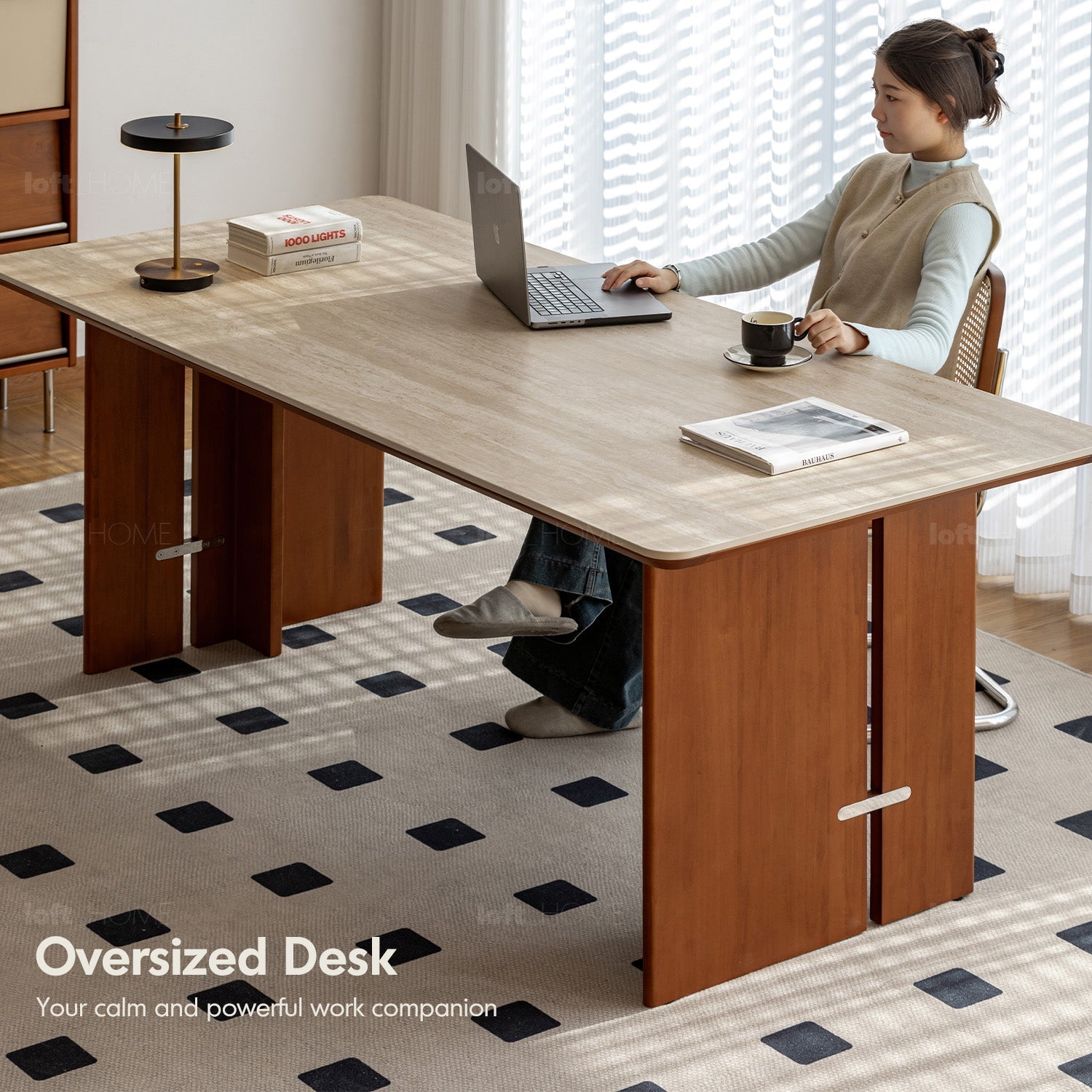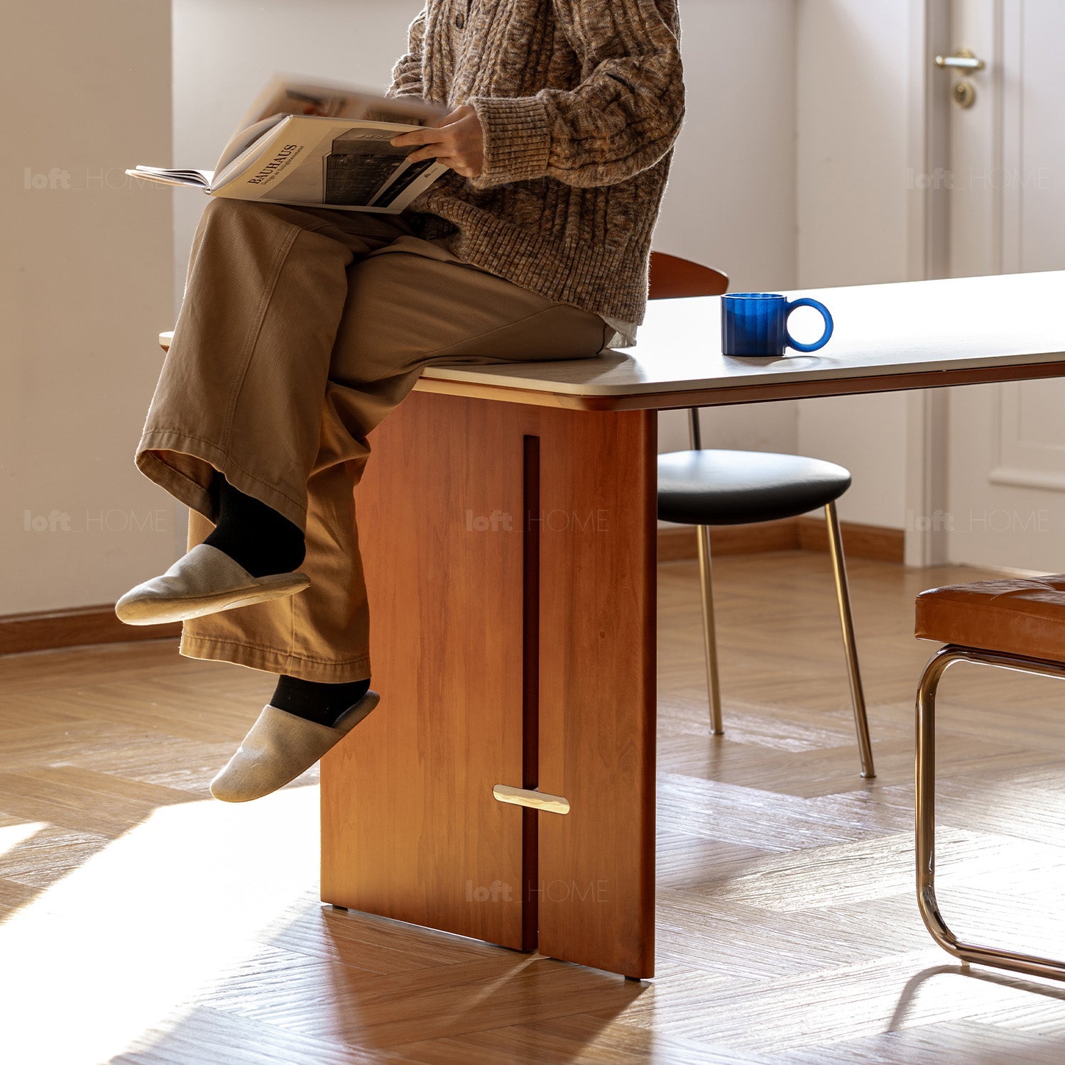 Featuring travertine-textured sintered stone and soft matte finish, adding timeless luxury to your dining or workspace.