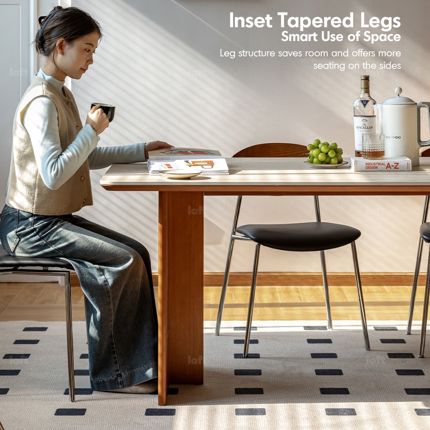 Spacious design offers unmatched comfort for group dining, work, or creative tasks.
