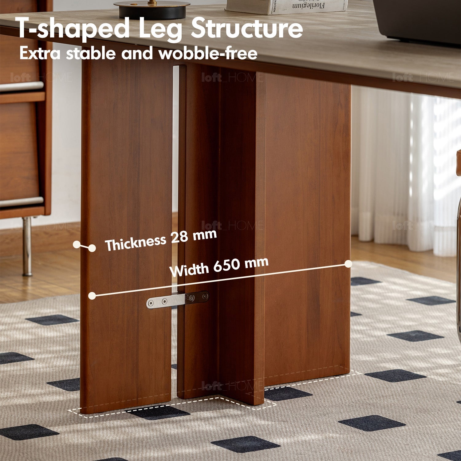 Inset Tapered Legs & T-Shaped Structure: