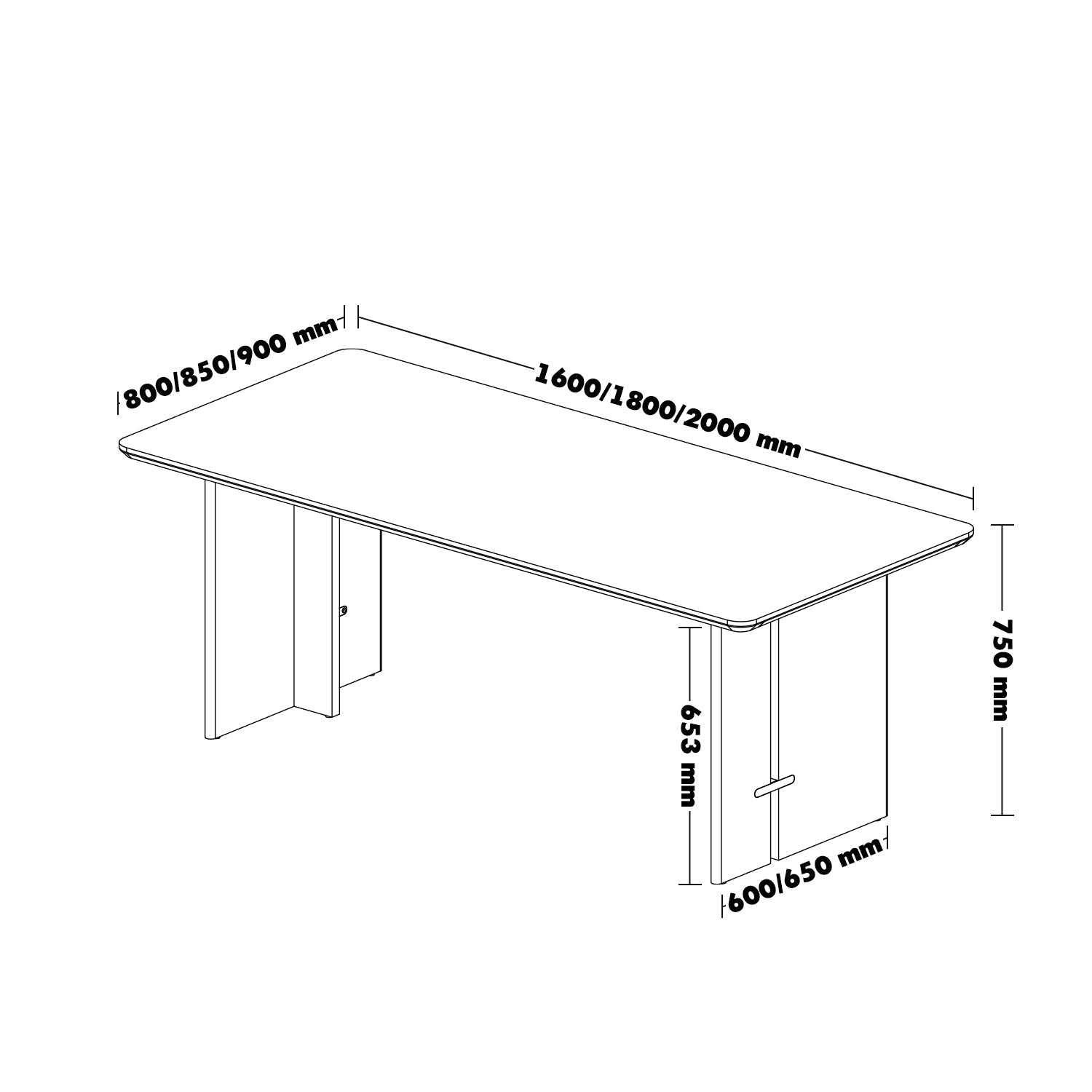 - L1600 x W800 x H750mm