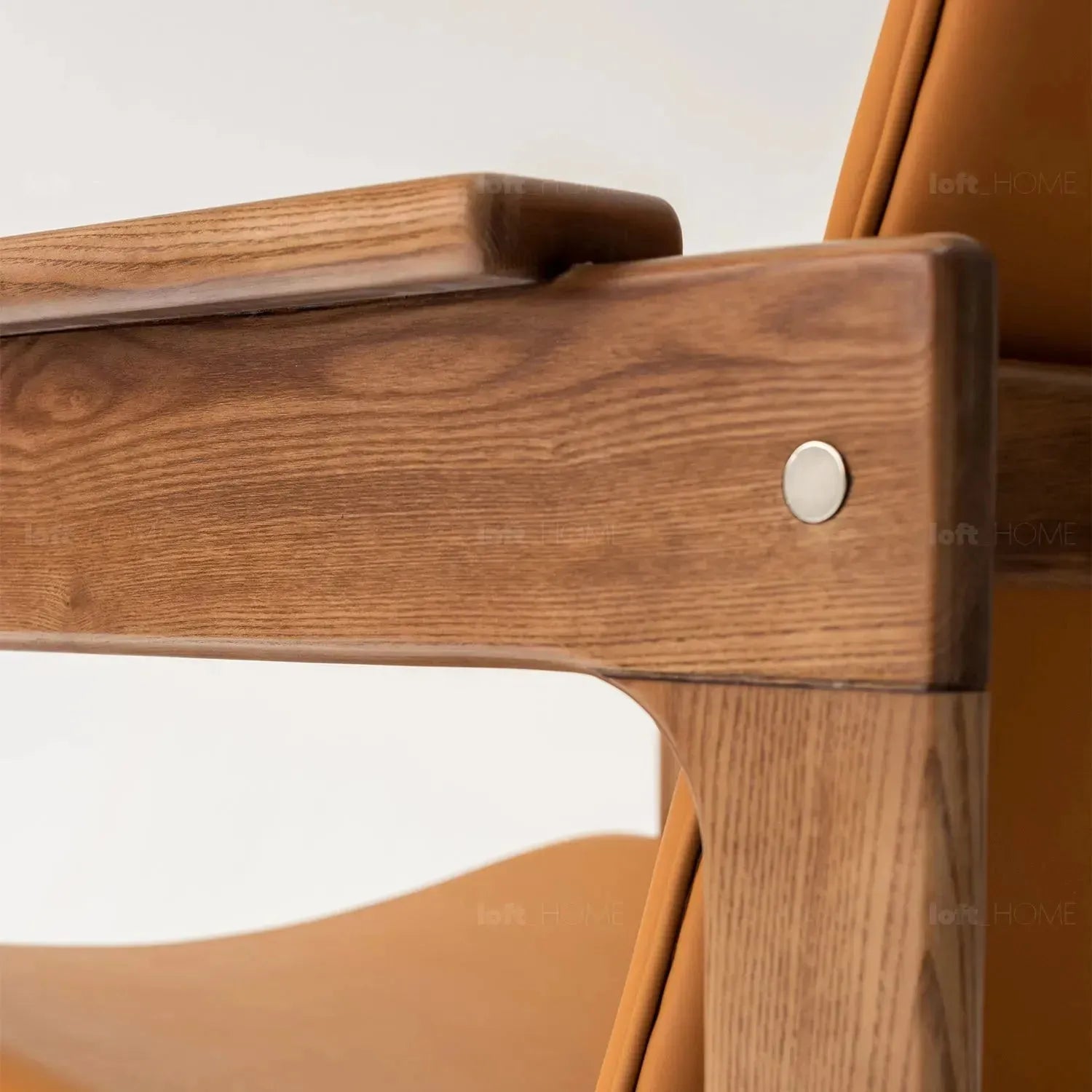The Japandi Leather 1 Seater Sofa can be seen as a symbol of eco-friendly lifestyle and conscious design on the way to comfort. Environmentally friendly. The commitment towards sturdiness and longevity of the frame is evident from its design, which uses solid ash wood. The clear, scratch-resistant lacquer allows the choice to be an eco friendly one because it prolongs the life of wood and enhances its natural beauty.