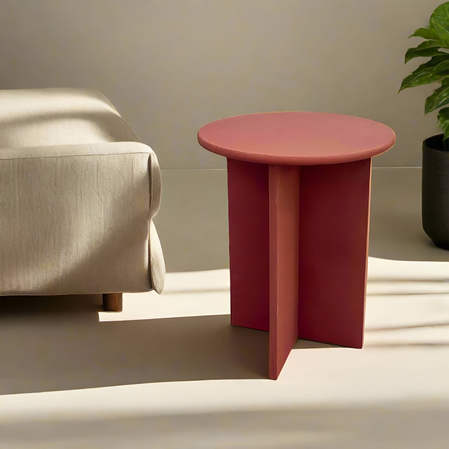 The Japandi Microcement Side Table ARTO embodies minimalist elegance with its Japandi-inspired design and red tones. Built from high-quality microcement, this versatile piece offers durability and a refined aesthetic, fitting seamlessly into any space. Perfect as a bedside or accent table, ARTO combines eco-friendly finishes with practical design, providing both functionality and style to elevate your modern interior.