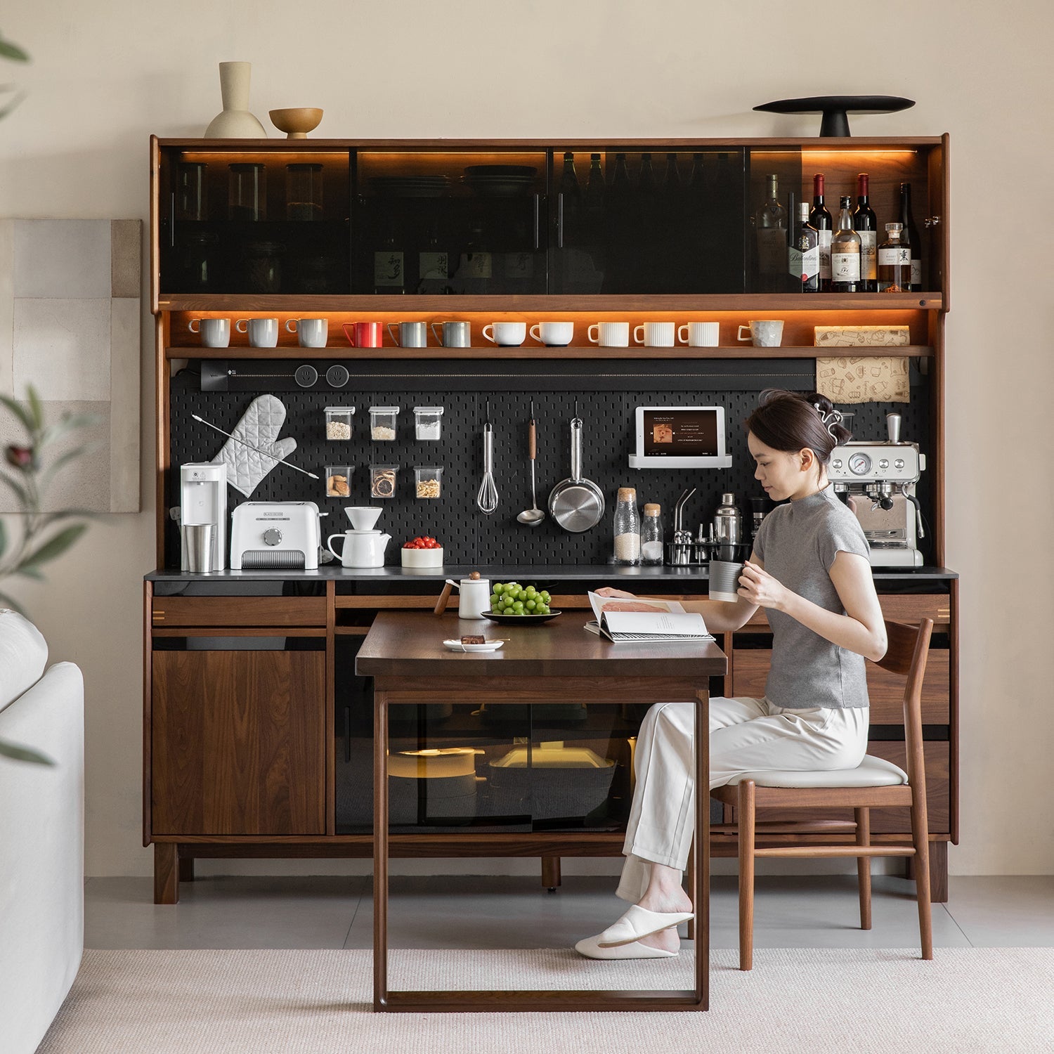 Combines a dining table and storage side cabinet into one seamless design, helping you save space while keeping your dining area organised, practical, and visually clean for everyday living. |