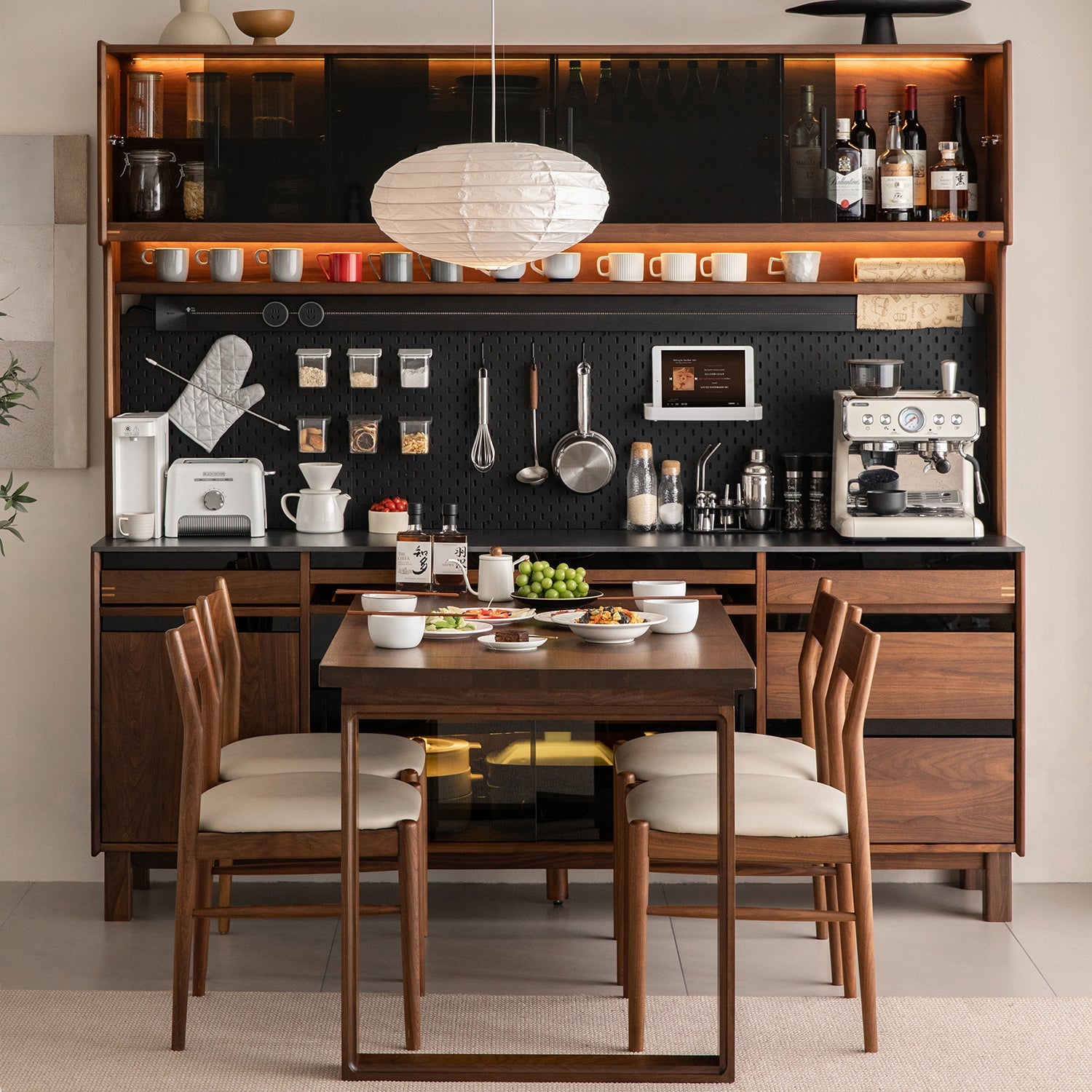 Japandi Walnut Wood Storage Side Cabinet With Dining Table HARMON blends dining and storage in one refined piece, offering warm walnut style, smart space use, and daily functionality.