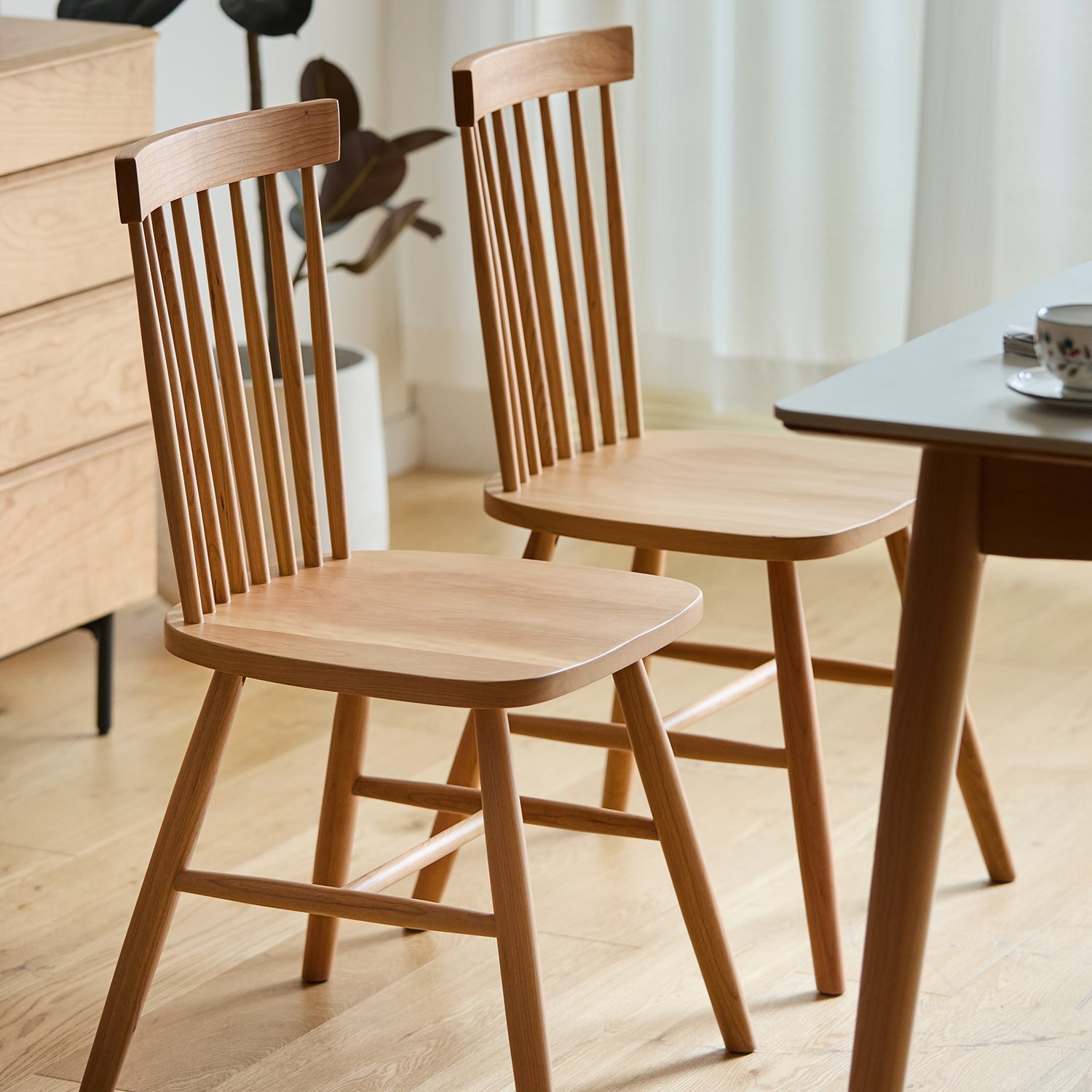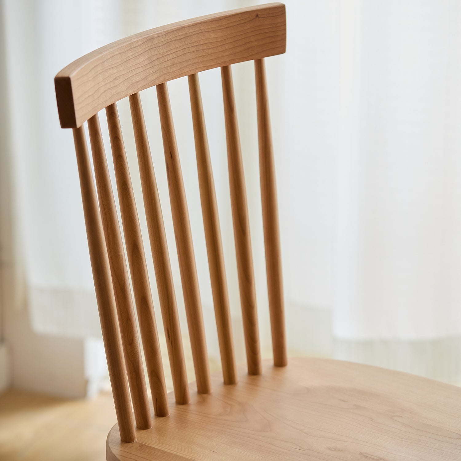 Scandinavian Cherry Wood Dining Chair WINDSOR adds timeless charm and natural warmth to any space with its curved backrest and solid cherry wood frame.