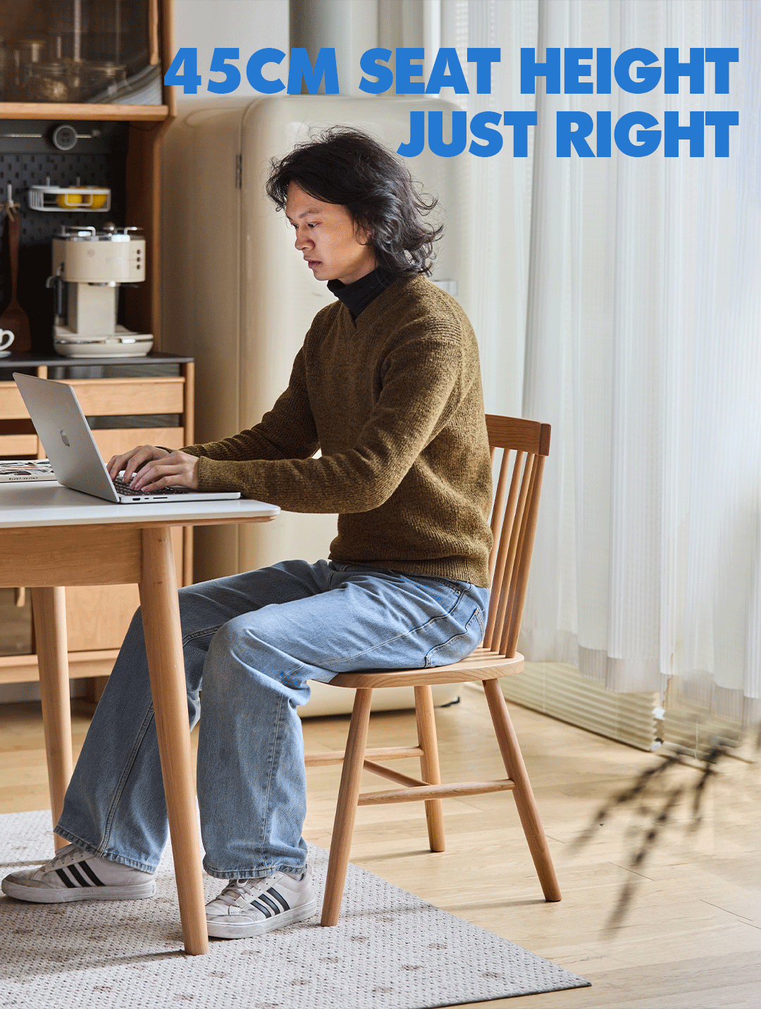 | Classic Style: | Inspired by the Windsor silhouette, this chair blends timeless design with a touch of Scandinavian charm to suit modern and traditional homes. |