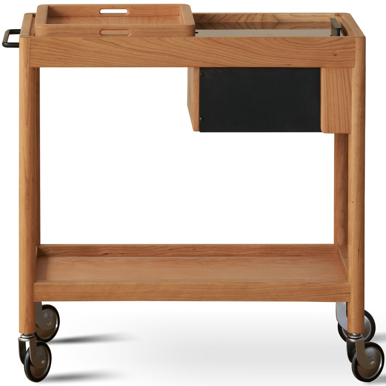 Scandinavian Cherry Wood Wheeled Trolley Side Table POCKET