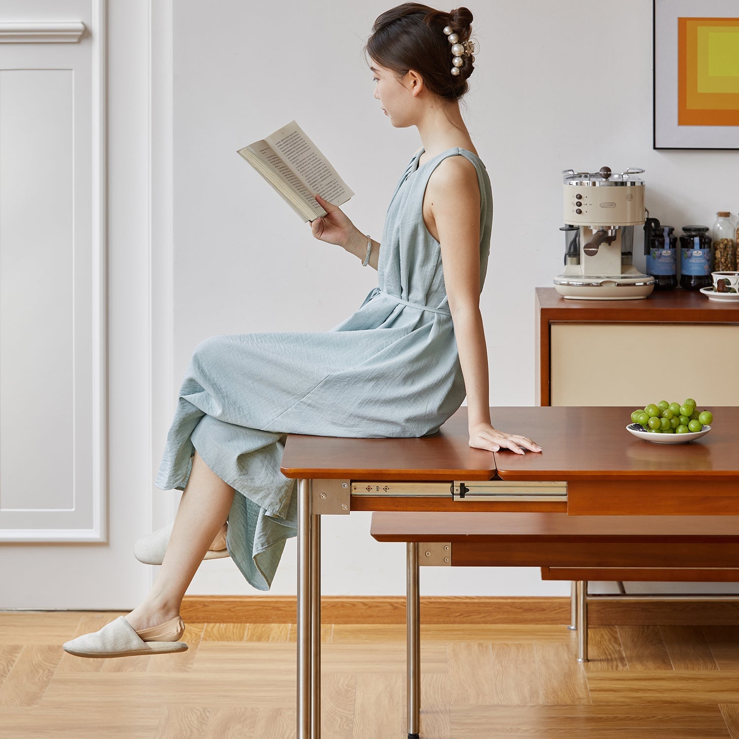 Easily extends in seconds to fit more people or extra dishes, making it perfect for both small daily meals and larger gatherings |