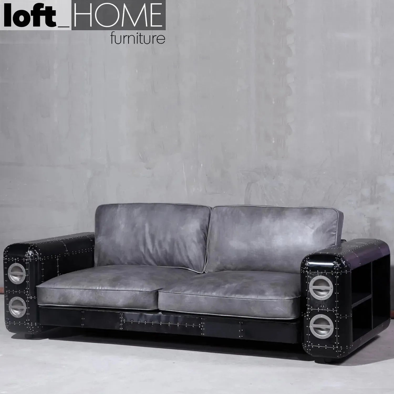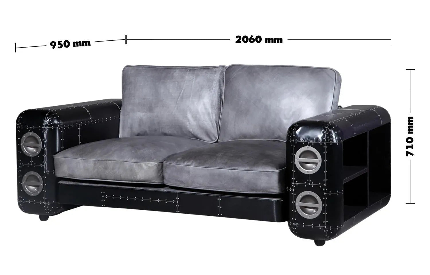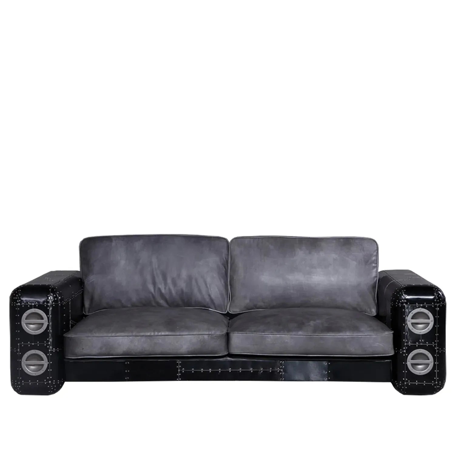 Industrial Aluminium Genuine Leather 3 Seater Sofa BLACK AIRCRAFT