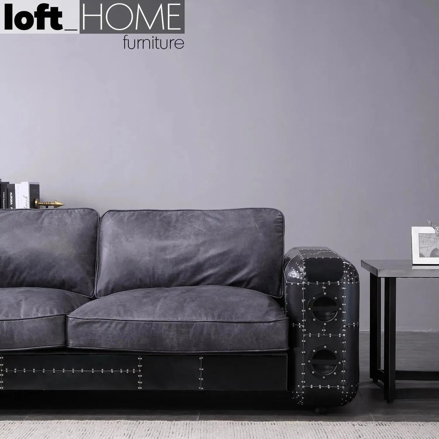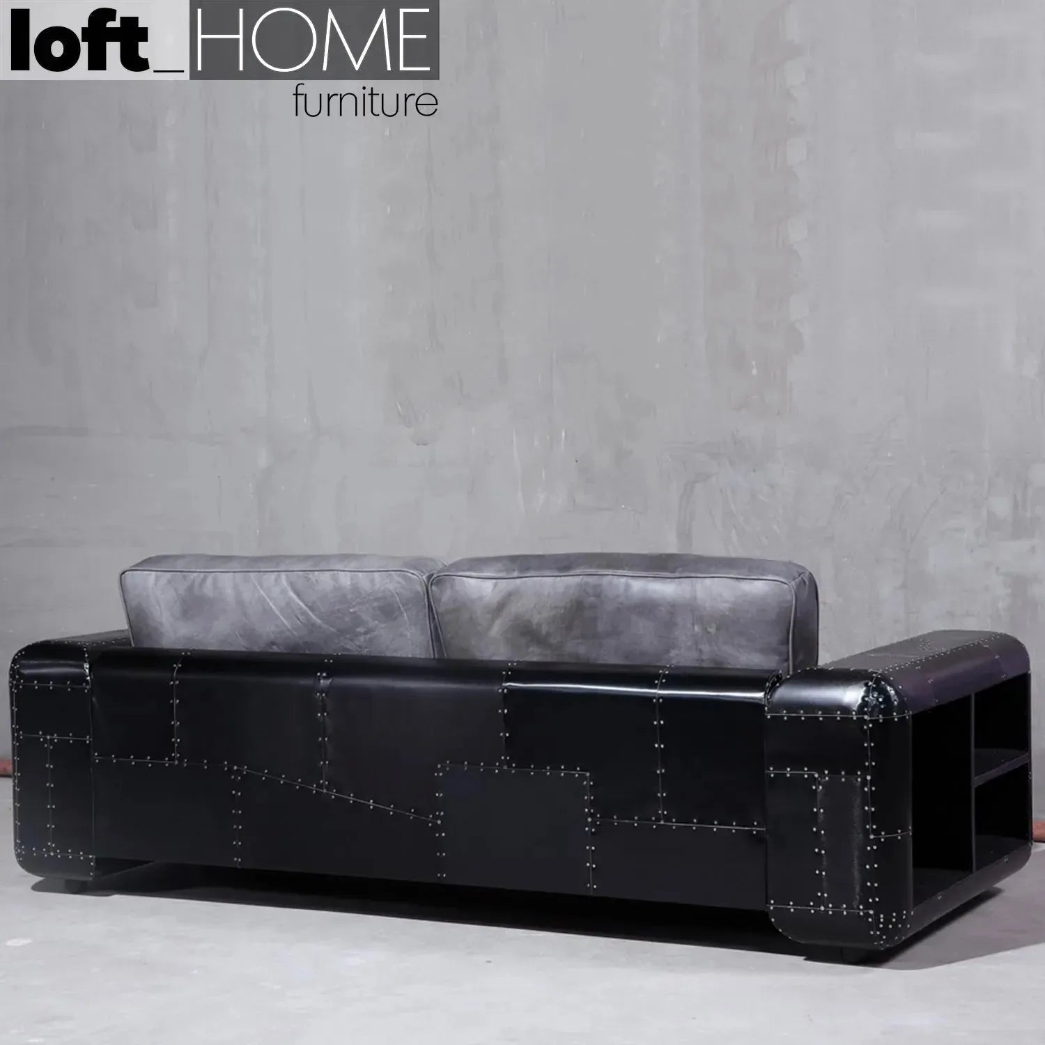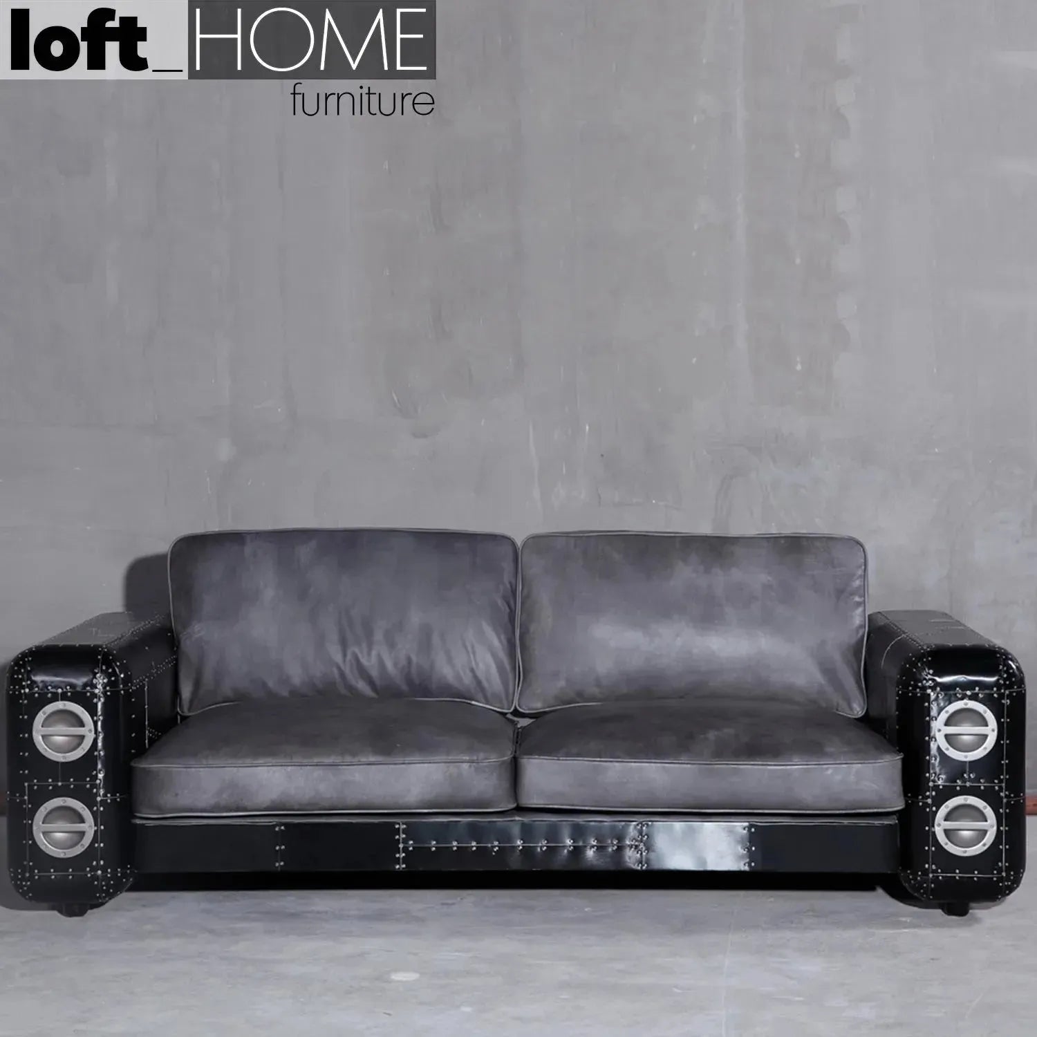 Industrial Aluminium Genuine Leather 3 Seater Sofa BLACK AIRCRAFT