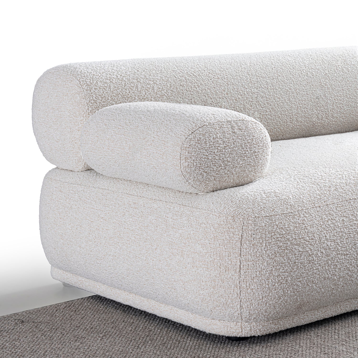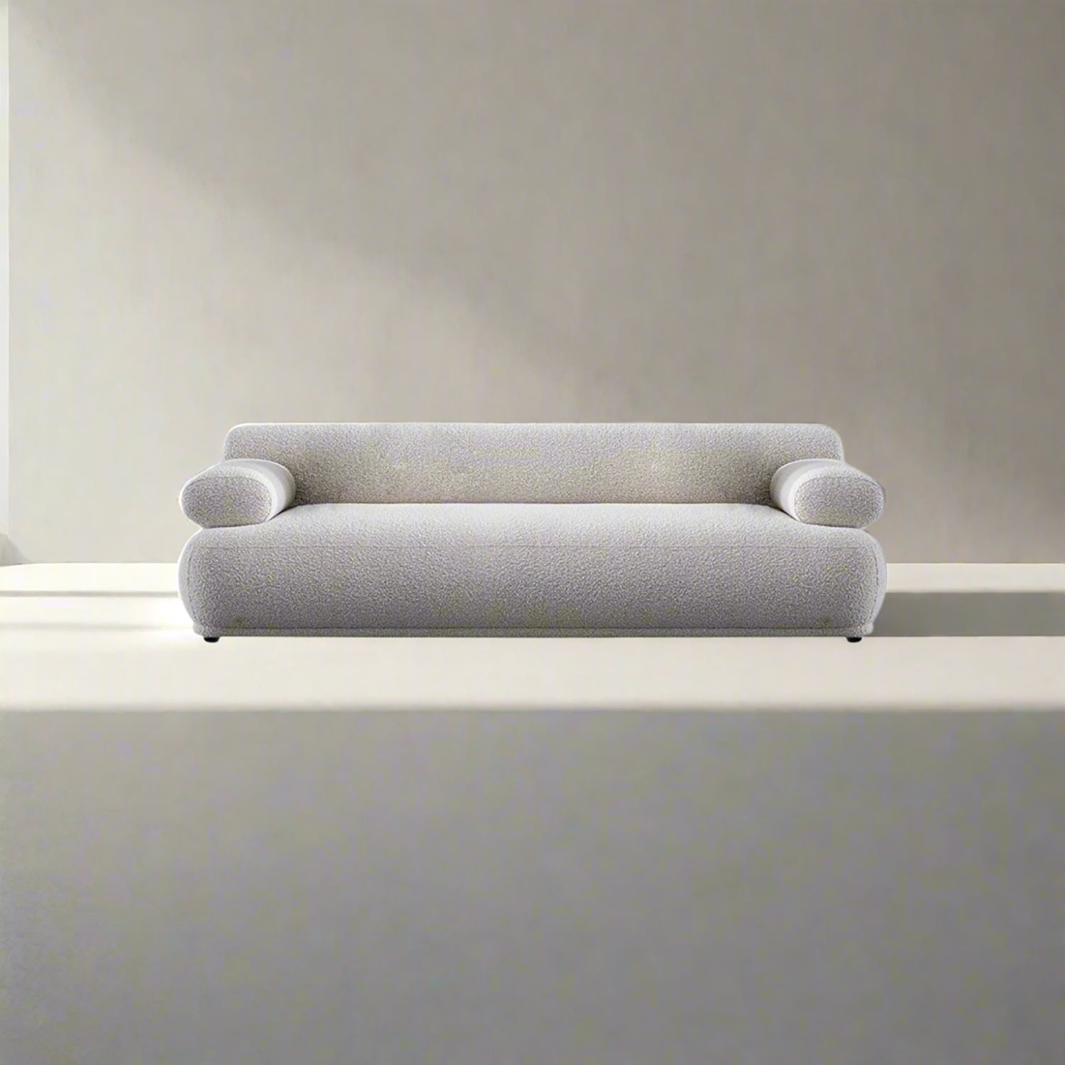 Big on comfort and bold on style. Cream Boucle Fabric 3 Seater Sofa MOCHI brings creamy boucle texture, sculpted arms, and plush seating to your space, modern minimalism, redefined.