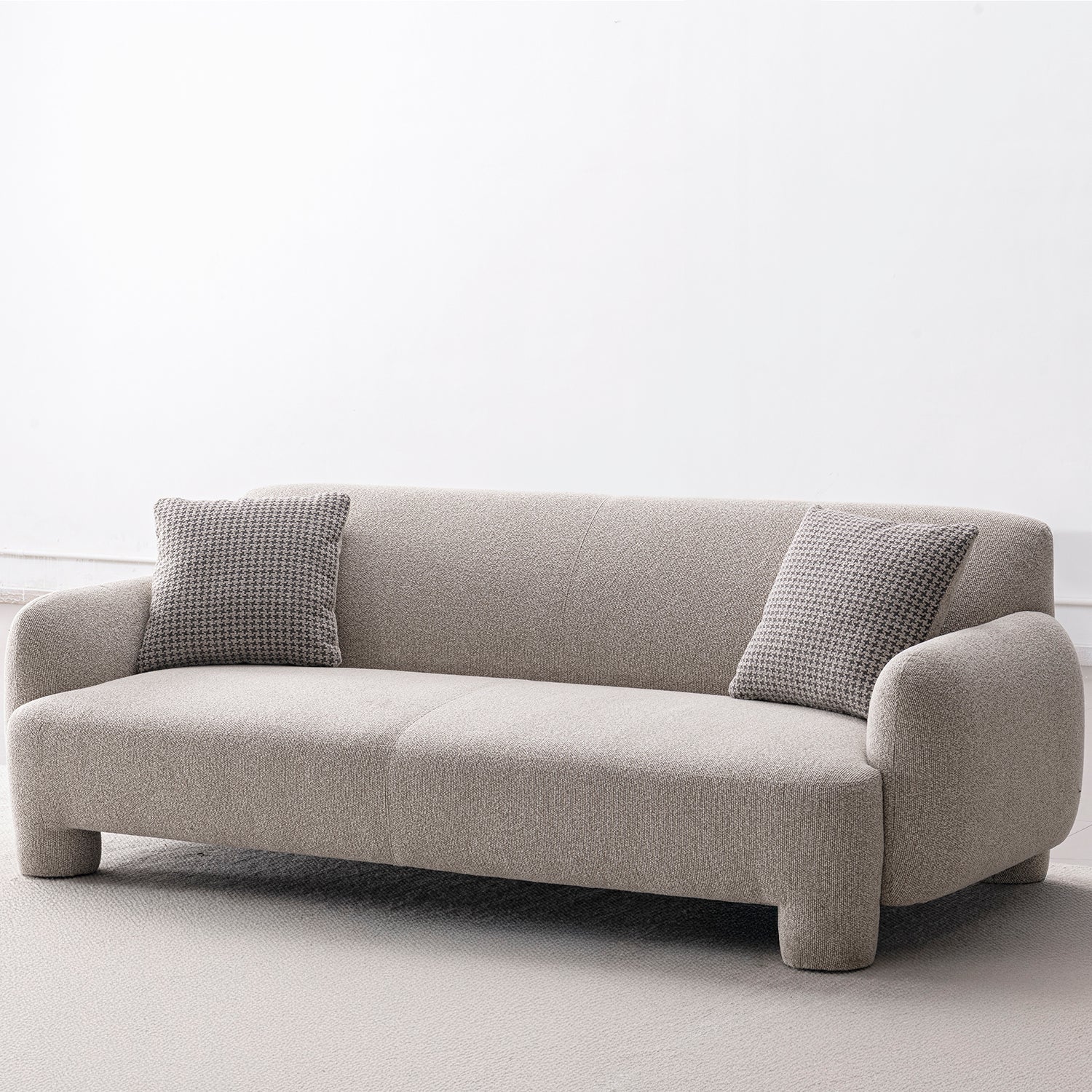 Cream Mixed Weave Fabric 3 Seater Sofa SYRA pairs plush foam, soft curves, and playful “elephant legs” for the perfect mix of support and cozy charm.