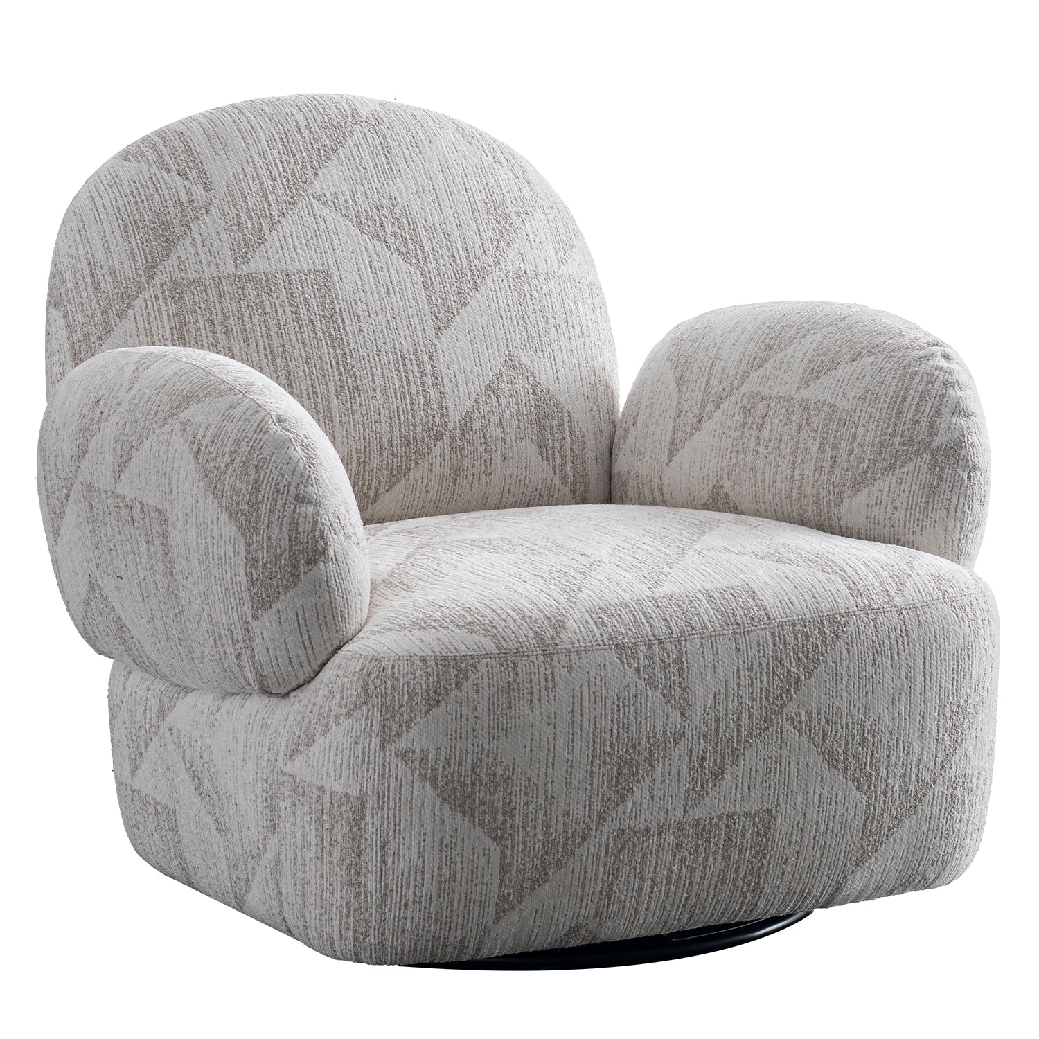 Soft curves meet smooth spins— Cream Mixed Weave Fabric Revolving 1 Seater Sofa POMU blends cozy mixed weave fabric and gentle geometric tones for timeless charm and comfort.