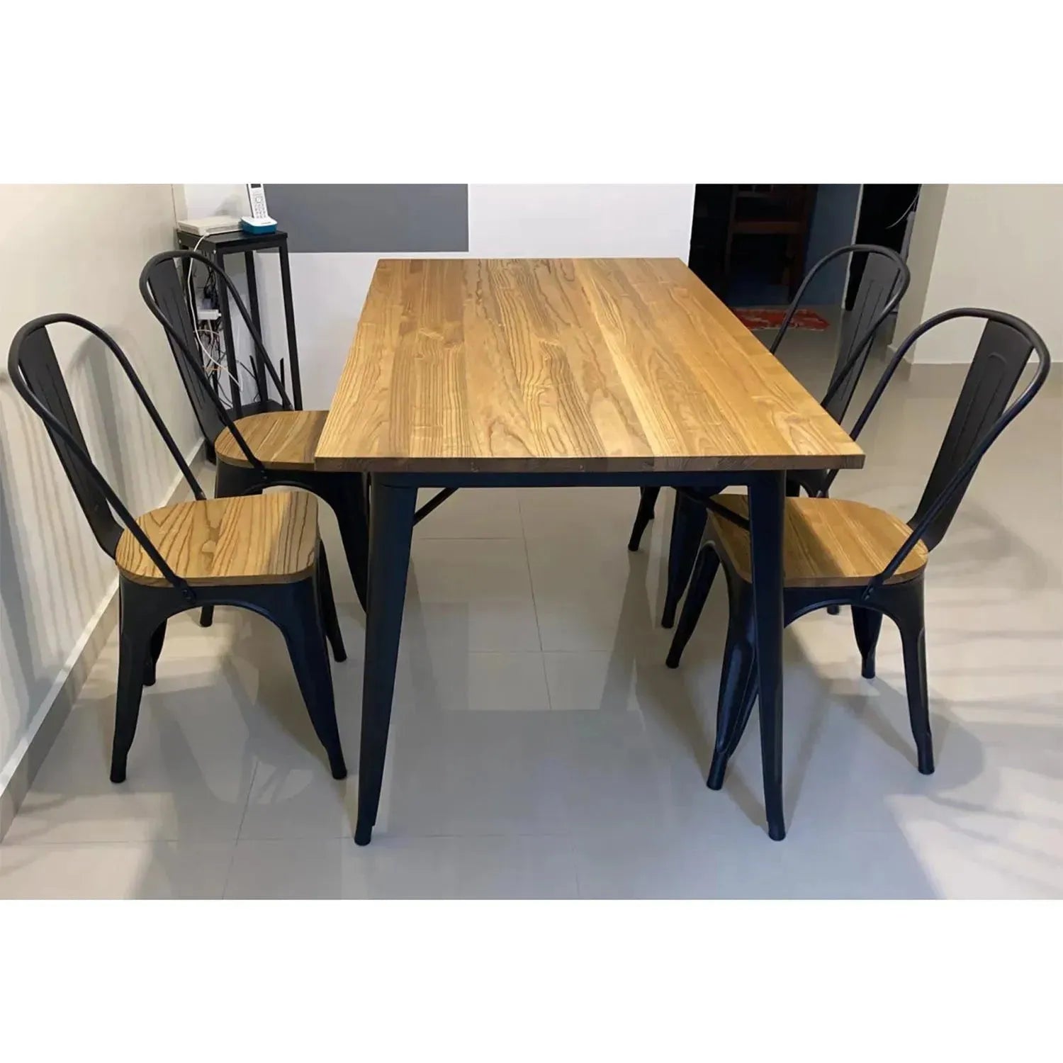 Industrial Elm Wood Dining Set 5 Pieces SANCTUM X