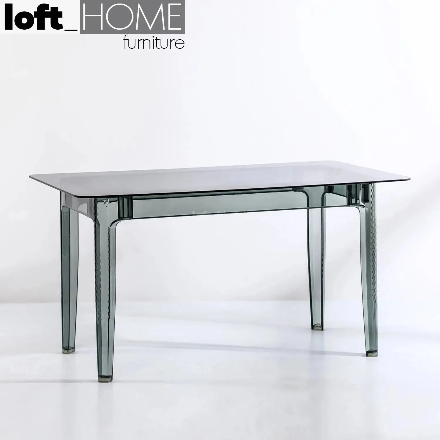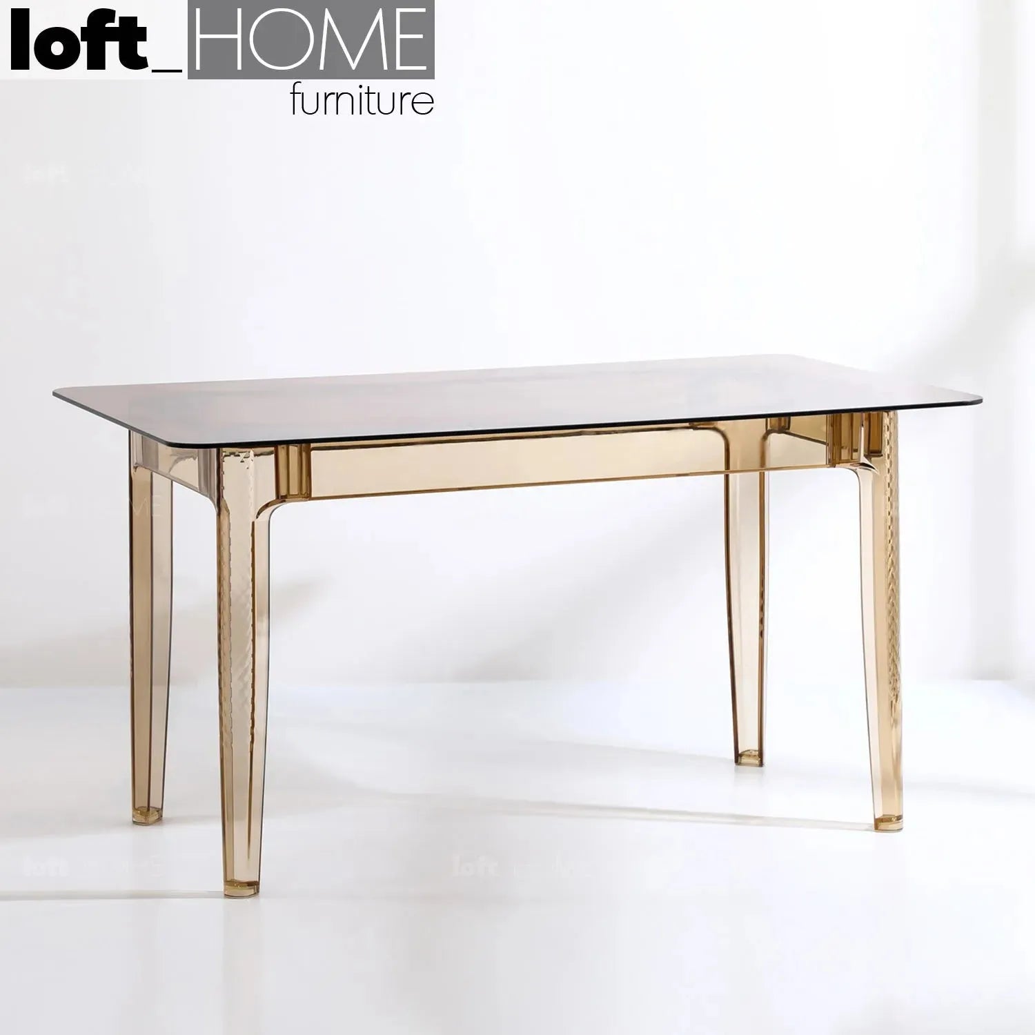 The tabletop is made of glass and is fitted with a frame that has a sleek, lightweight yet sturdy acrylic structure to complete the look in this modern dining room. |