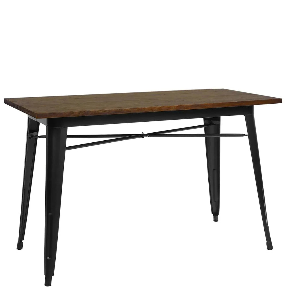 | Material: | Elm wood table top with powder coated steel legs. |