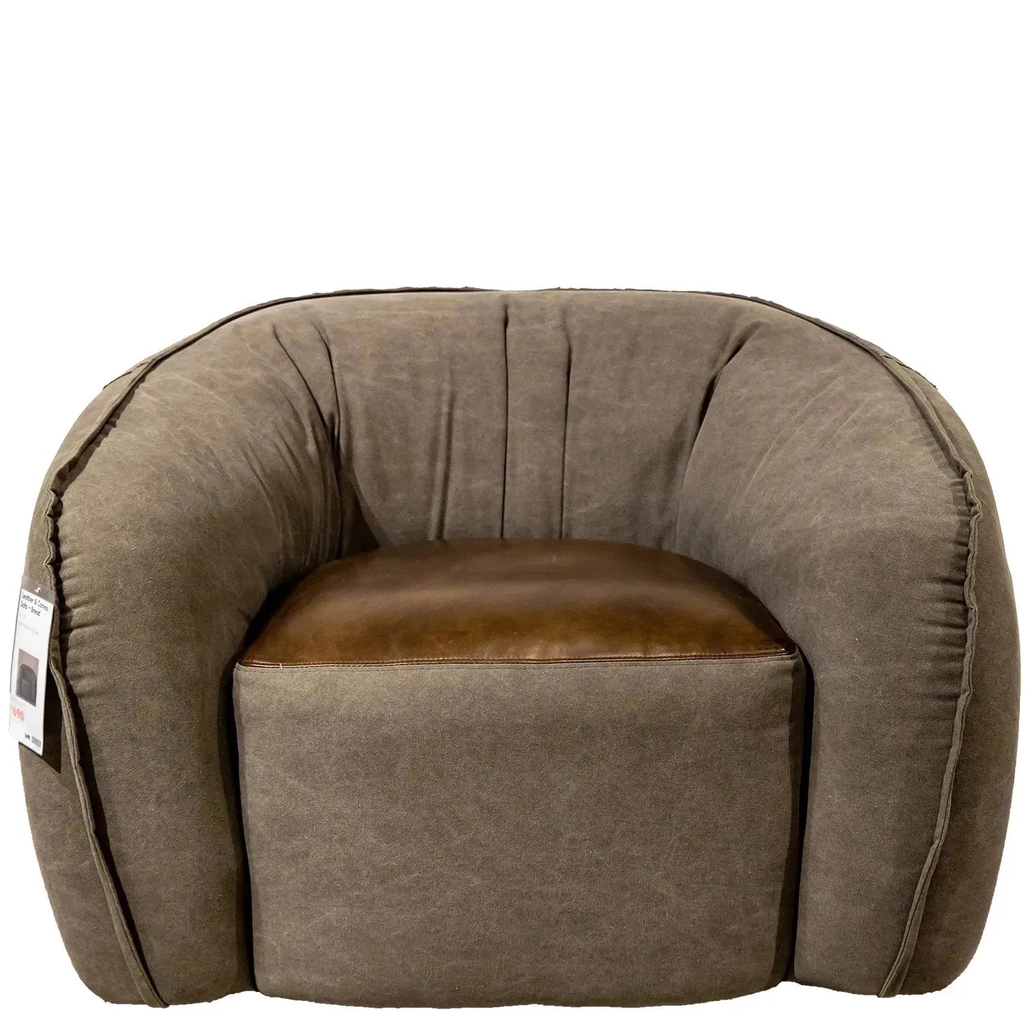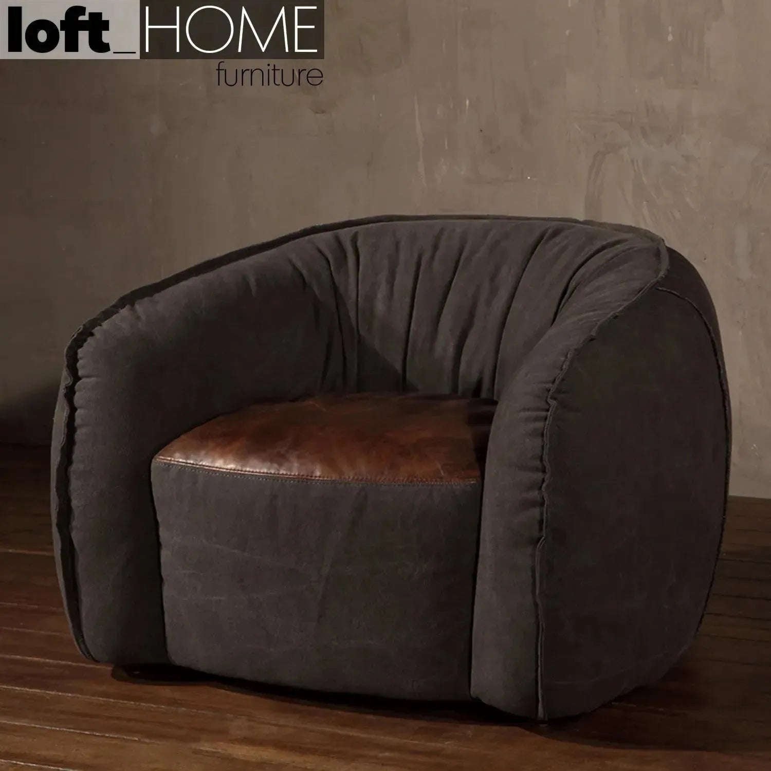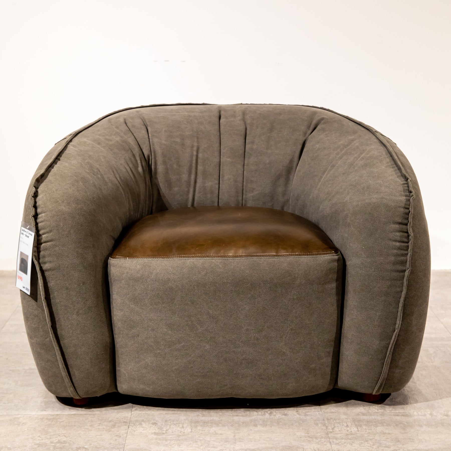 Vintage Fabric And Genuine Leather 1 Seater Sofa BREAD
