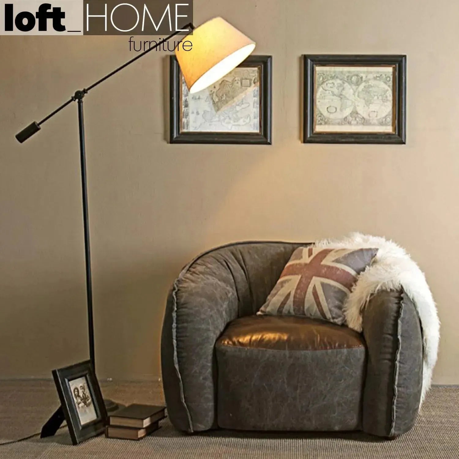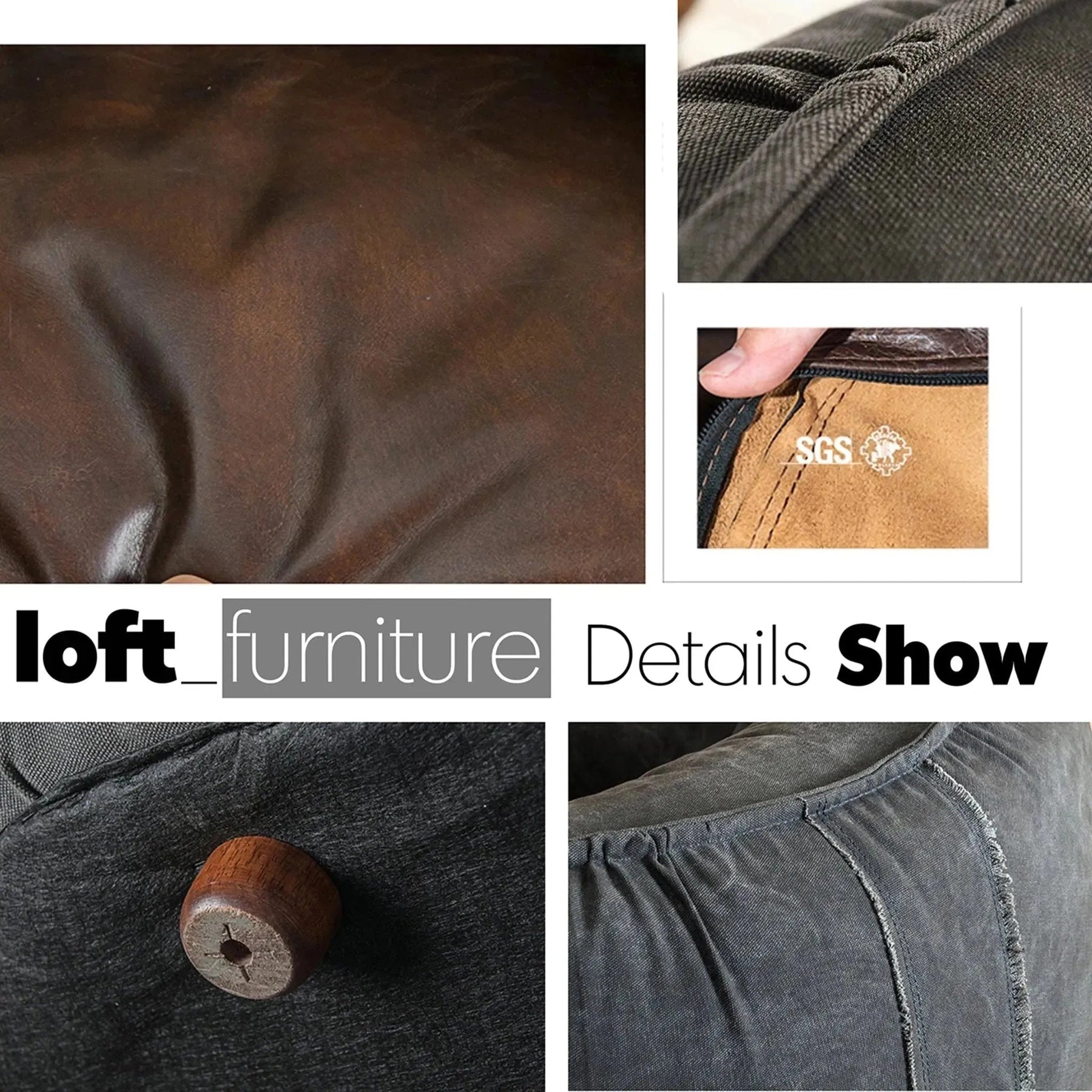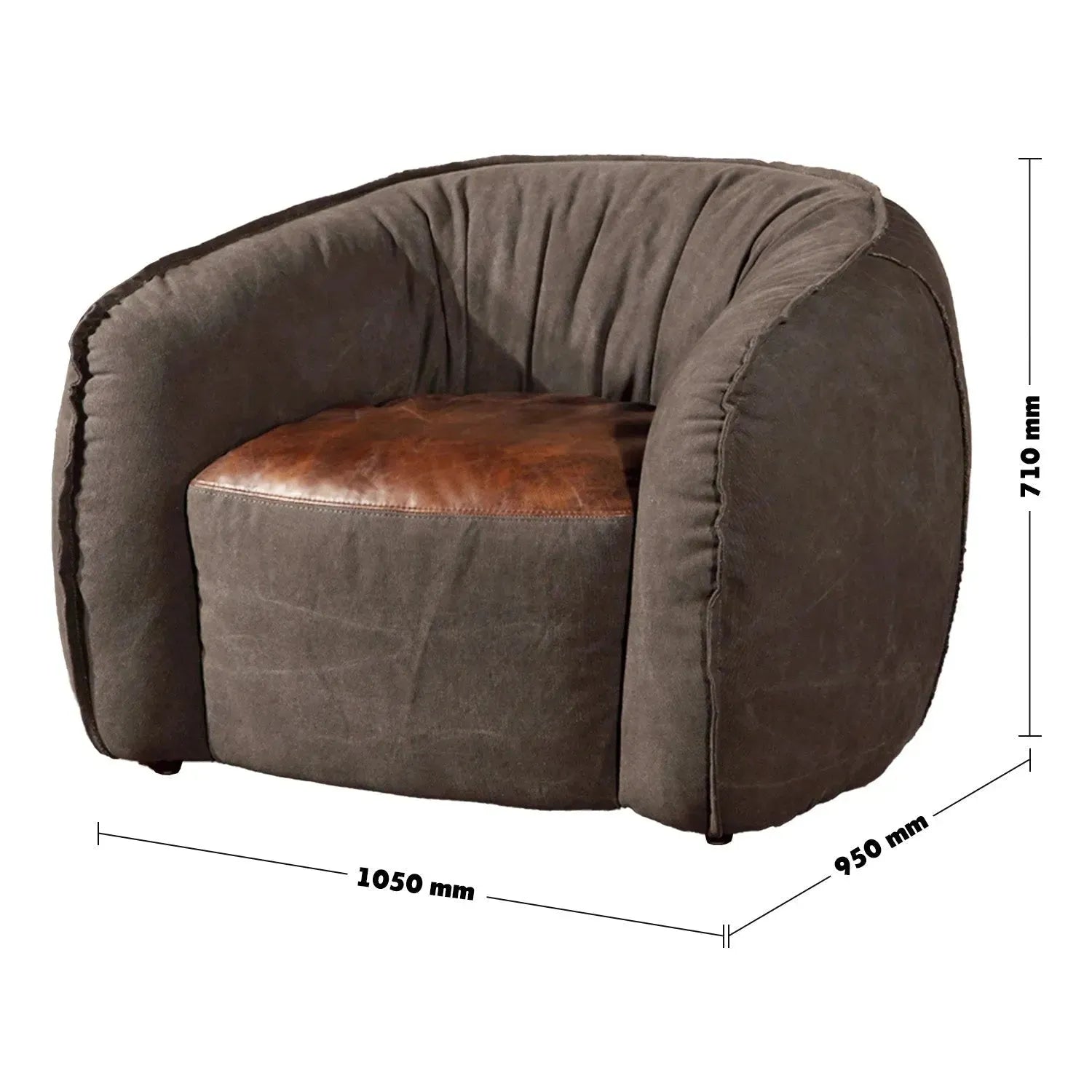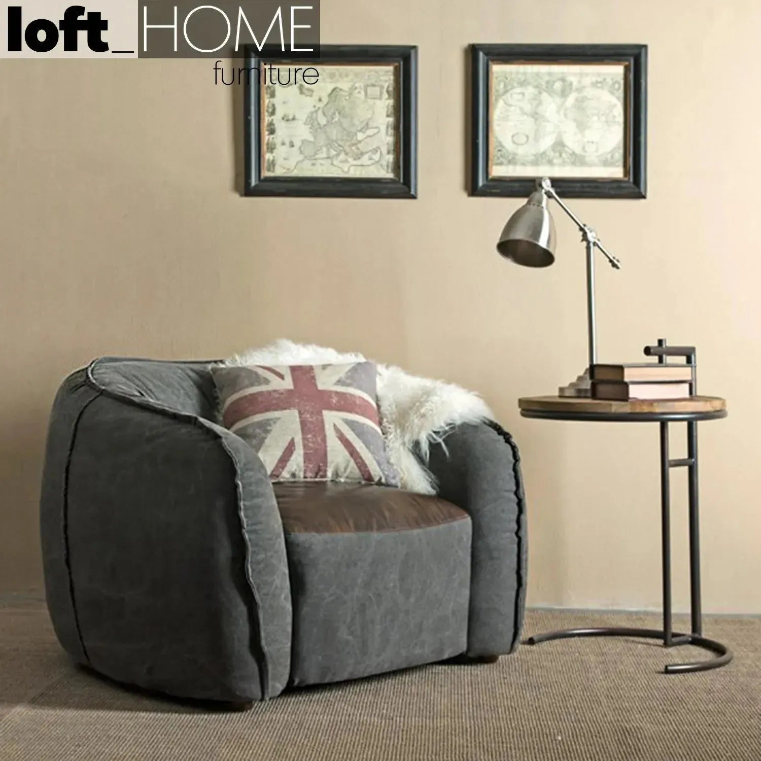 Vintage Fabric And Genuine Leather 1 Seater Sofa BREAD