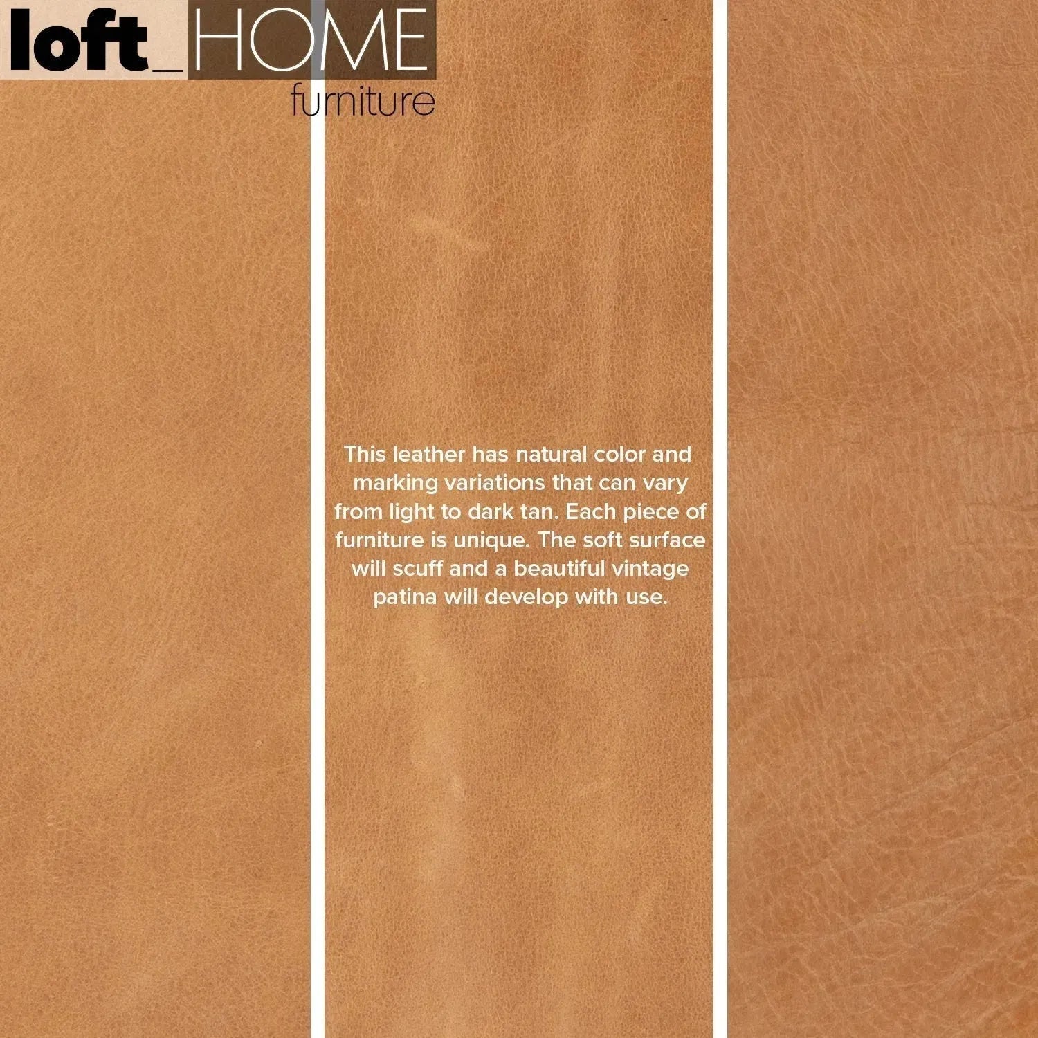 Leather is a unique natural material with varying colors, grains, and creases. With time and use, it will develop a beautiful patina. |