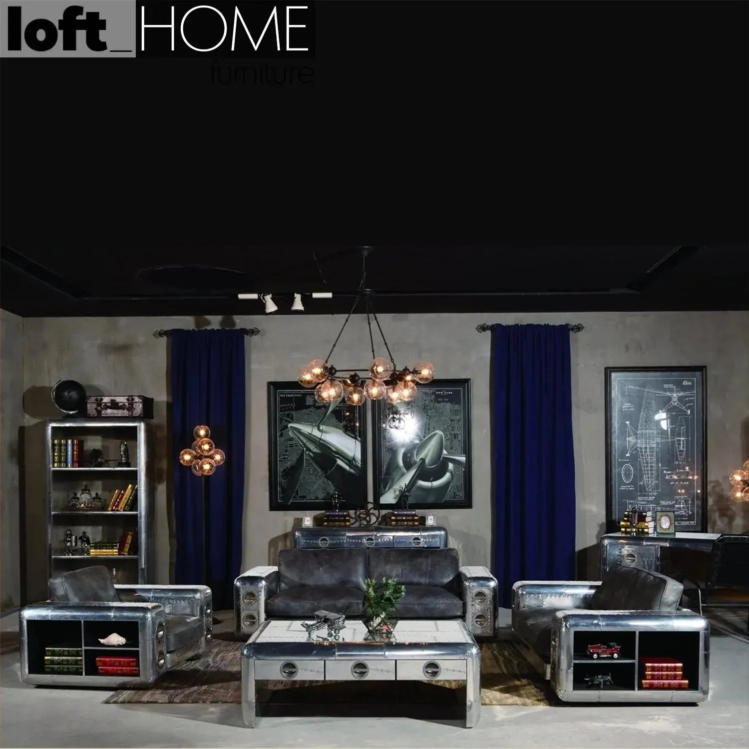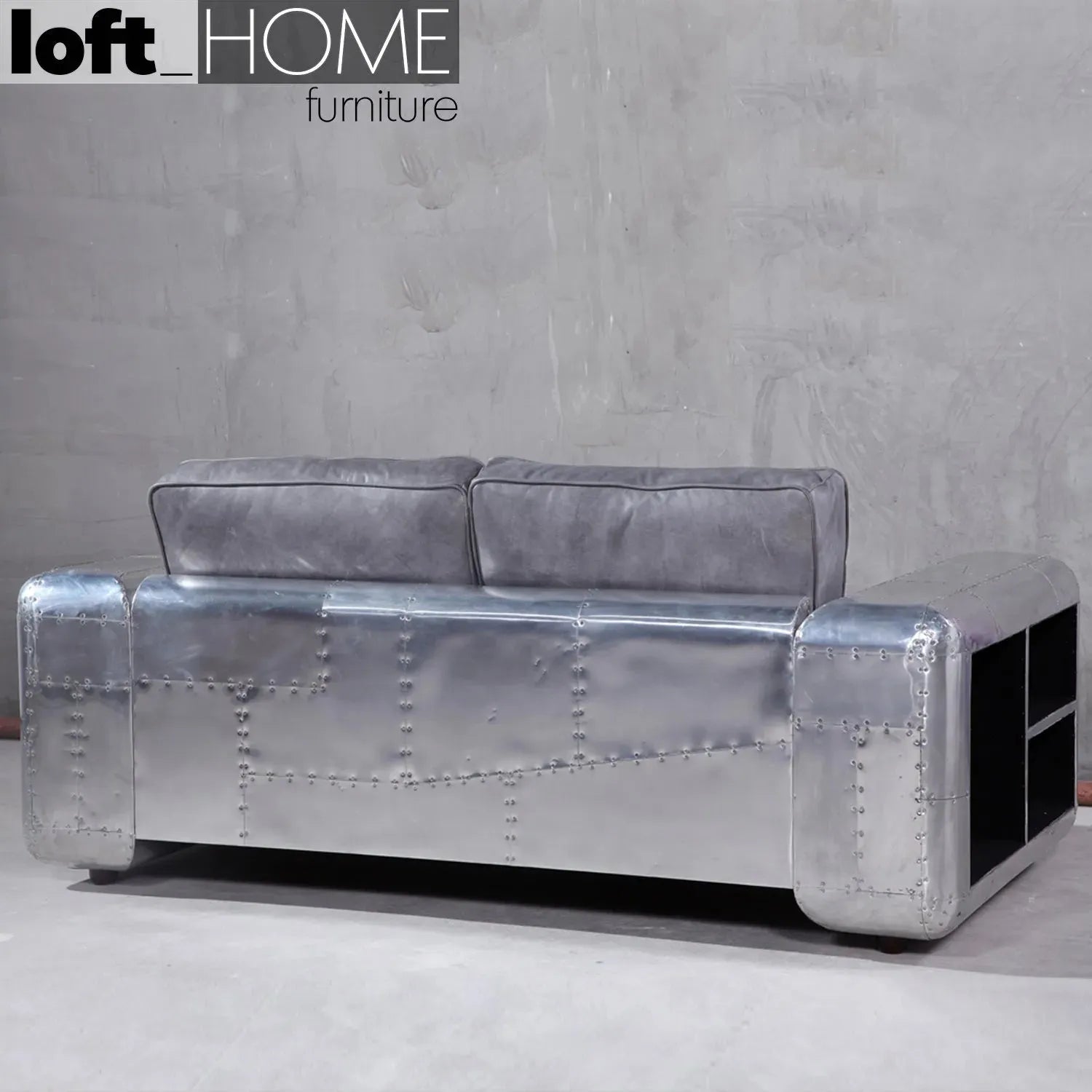 Industrial Genuine Leather 2 Seater Sofa SILVER AIRCRAFT