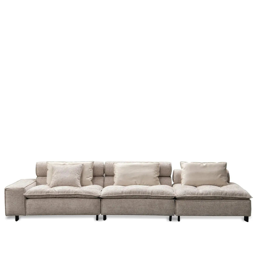 The sofa comes with four matching pillows, which not only enhance the comfort but also complete the overall look. These pillows, covered in the same Beige Mixed Weave Fabric, provide additional support and styling flexibility. |