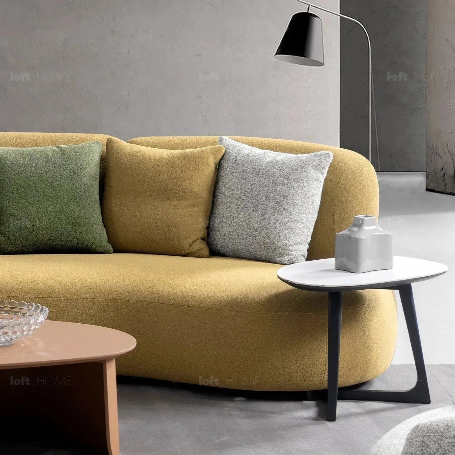 The Dijon Yellow Sherpa fabric is designed for easy maintenance, allowing the sofa to remain fresh and vibrant with minimal upkeep. Its versatility complements a range of interior styles, offering both practicality and aesthetic appeal. |