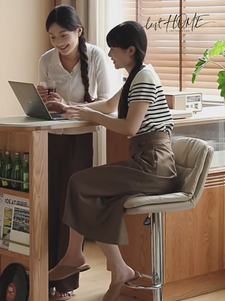 The Modern PU Leather Height Adjustable Revolving Bar Chair SPIN combines luxury and functionality for any space. Featuring a 200mm adjustable height range, 360° swiveling seat, and ergonomic lumbar support, it ensures personalized comfort. The double-layered cushion provides softness and durability, while the robust metal frame and thickened anti-explosion base offer stability and safety.