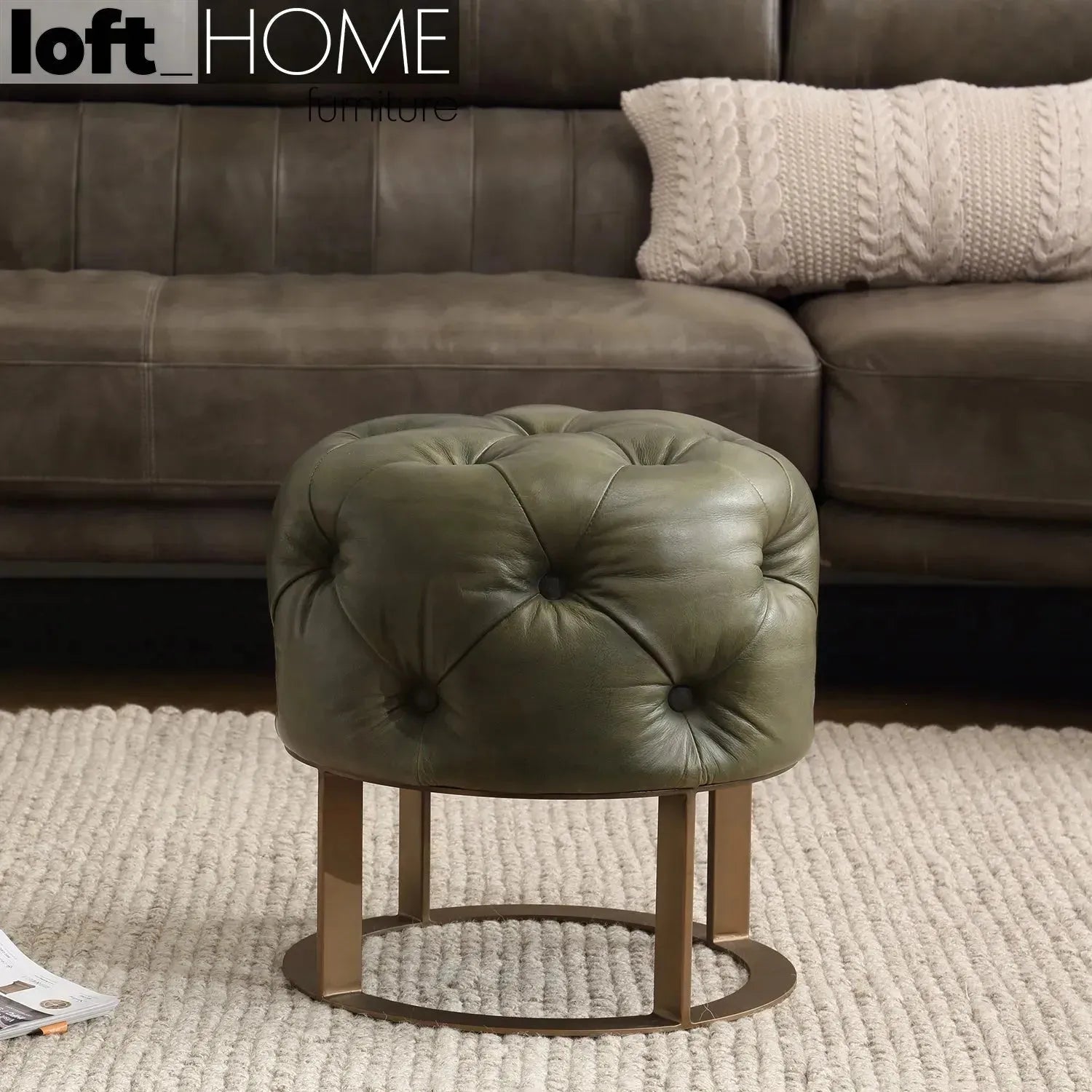 Vintage Genuine Leather Ottoman GREEN FRANCO