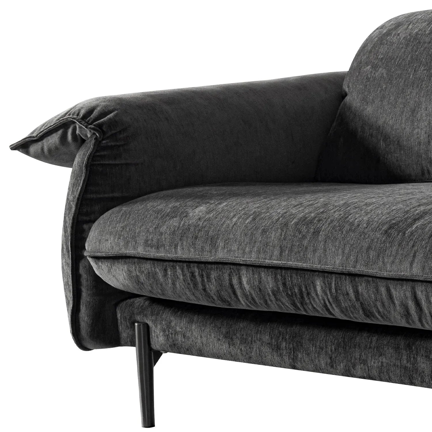 The sleek black chenille velvet and modern design allow the sofa to seamlessly integrate into diverse décor themes, from minimalist to classic, while adding a touch of luxury.