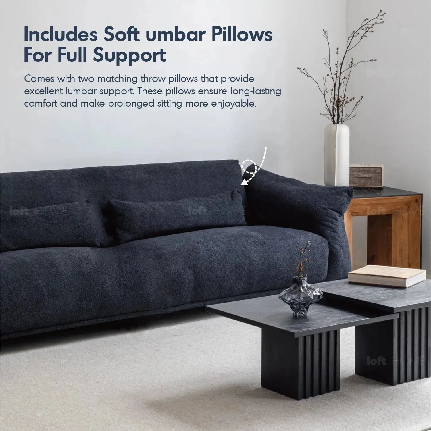 The sofa seat is filled with a luxurious combination of down and high-density foams, providing a soft and rebounding feel. |