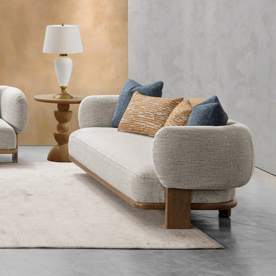 Log style and sleek design elements give the sofa a timeless mid-century modern appeal, suitable for various interior decor styles. |