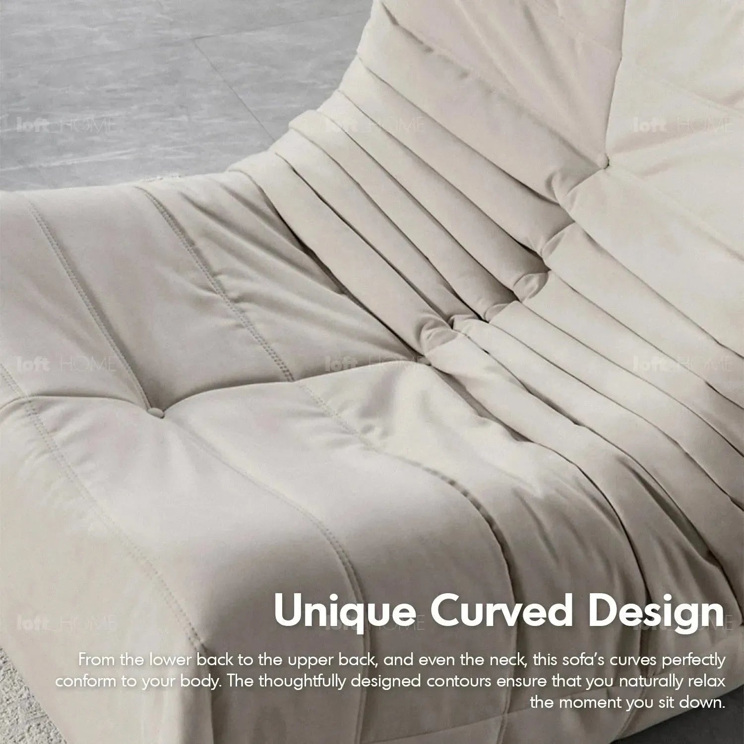 Cozy, immersive seating with our C-shaped design, blending curves and softness for enveloping comfort and ergonomic support. |