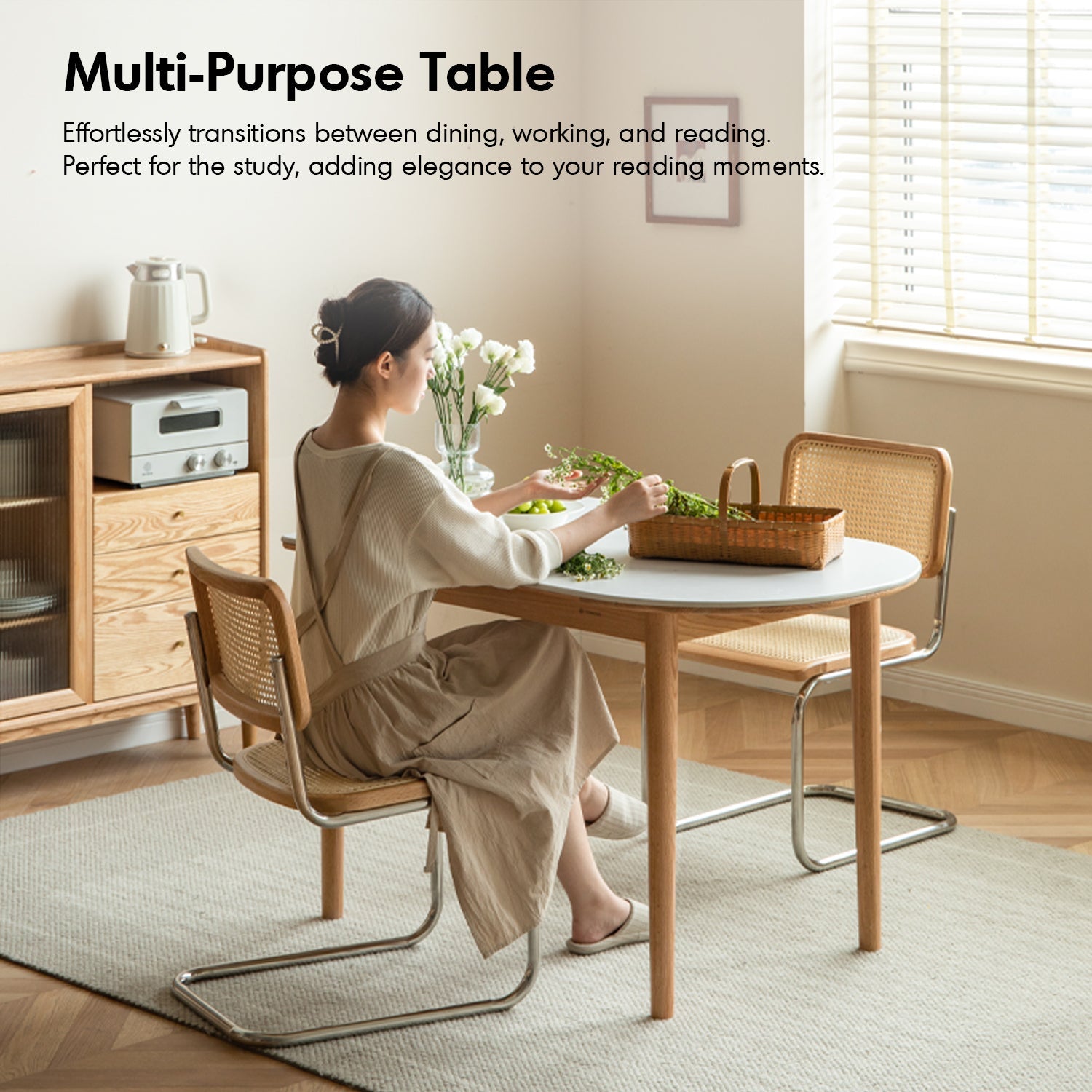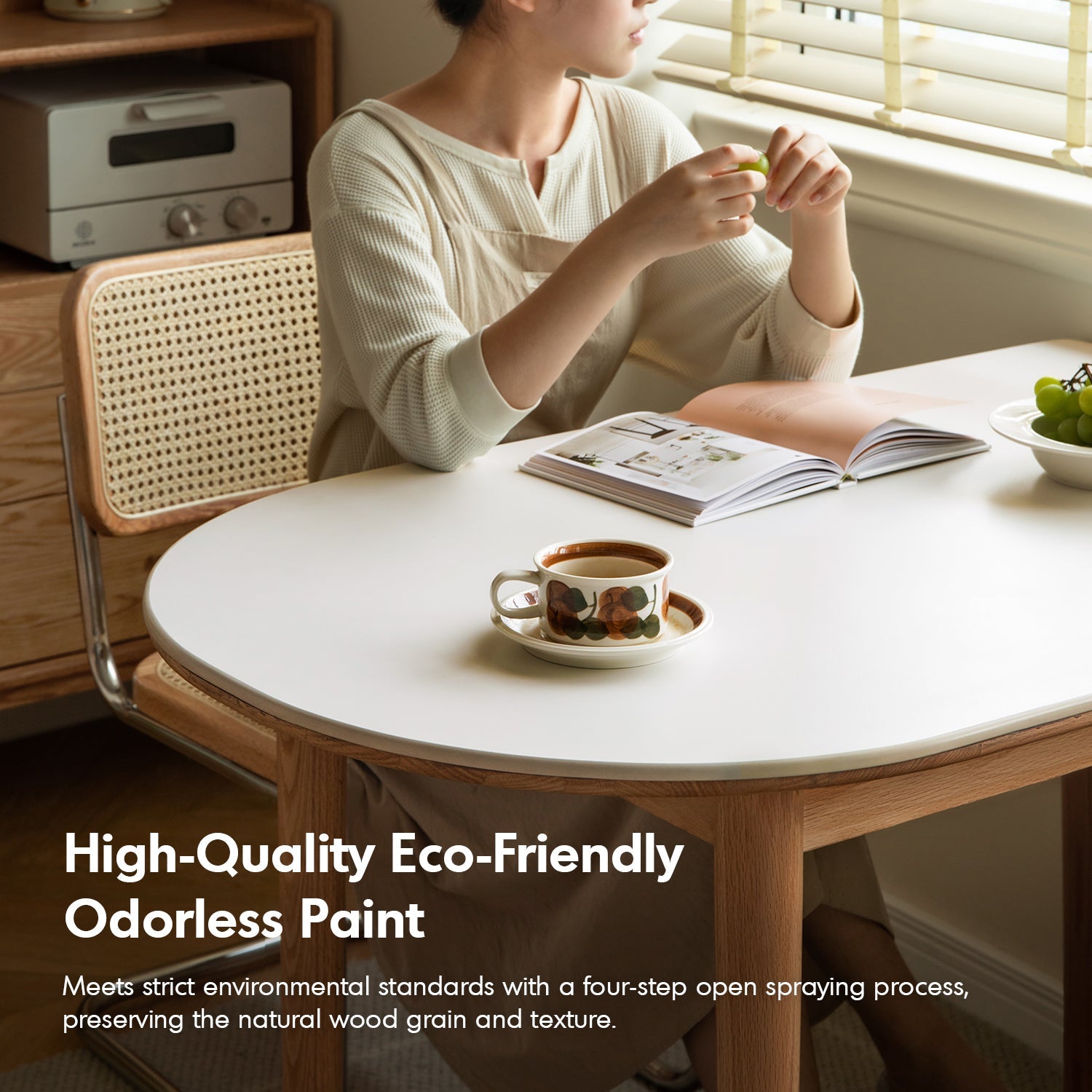 Crafted from FAS-grade solid oak, it boasts natural grain patterns, high durability, and a formaldehyde-free, eco-friendly build. |