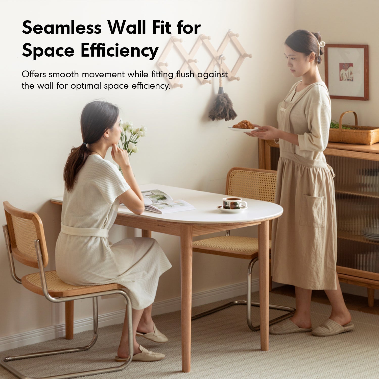 The seamless wall-fit design ensures optimal space usage, making it ideal for compact dining or living areas. |