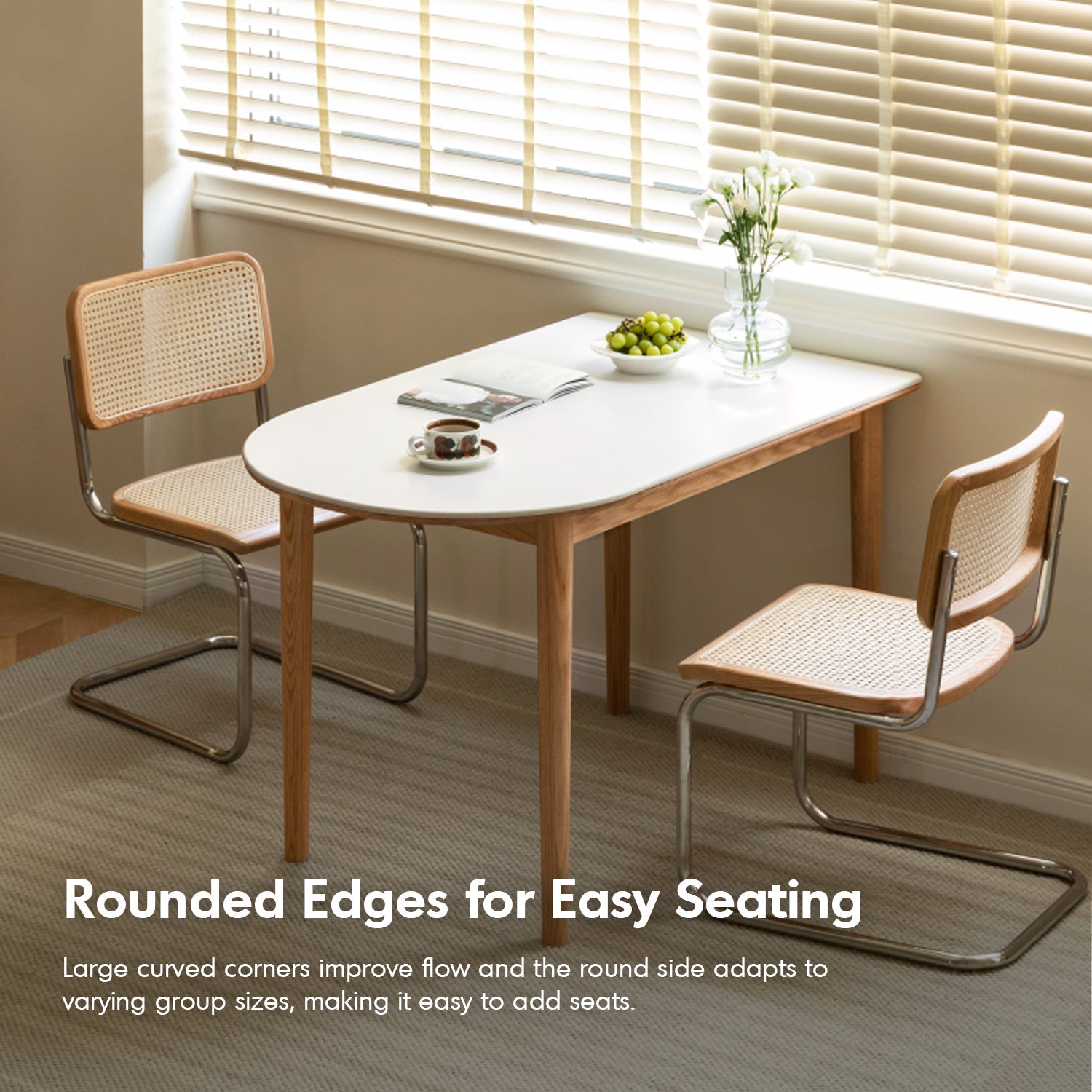 Combines the spaciousness of a square table with the cozy intimacy of a round table, creating a unique blend of form and function. |