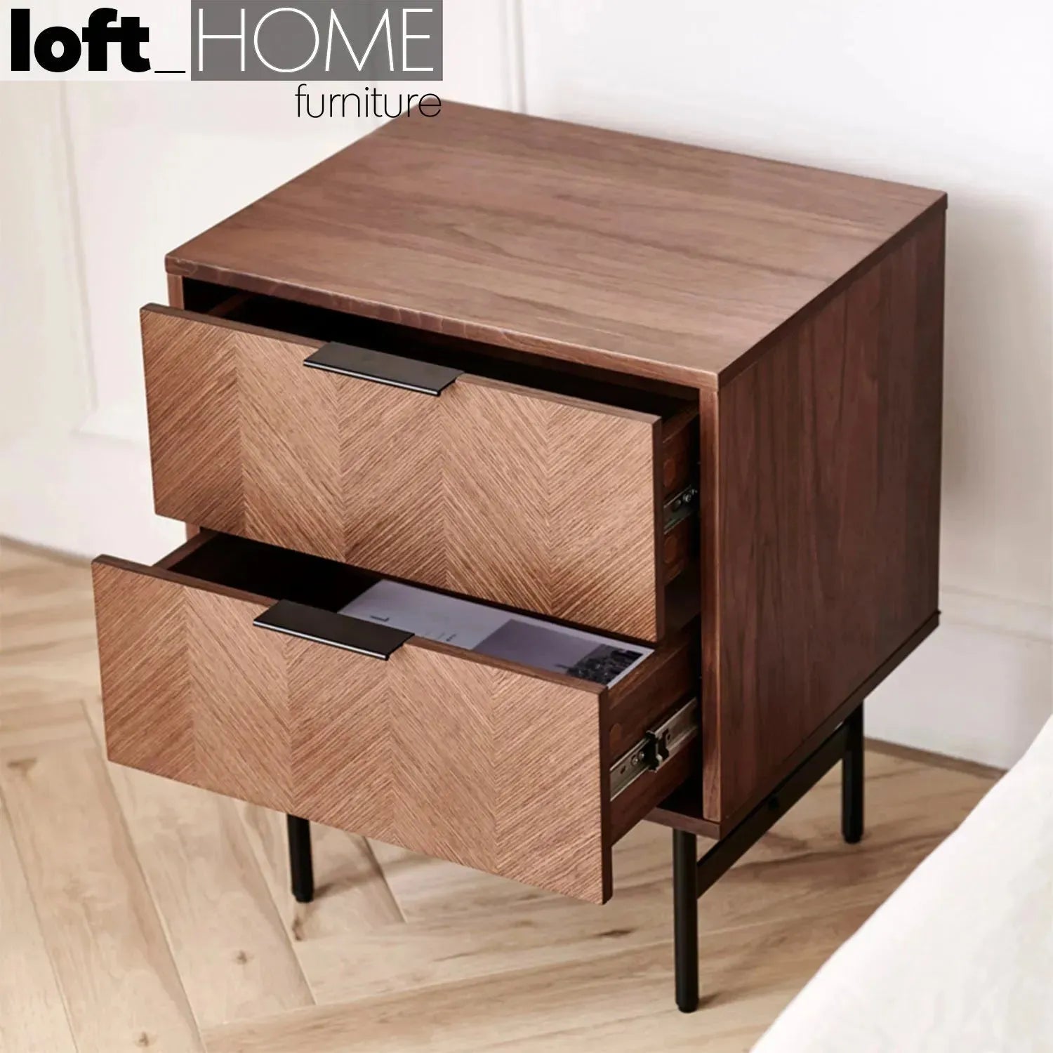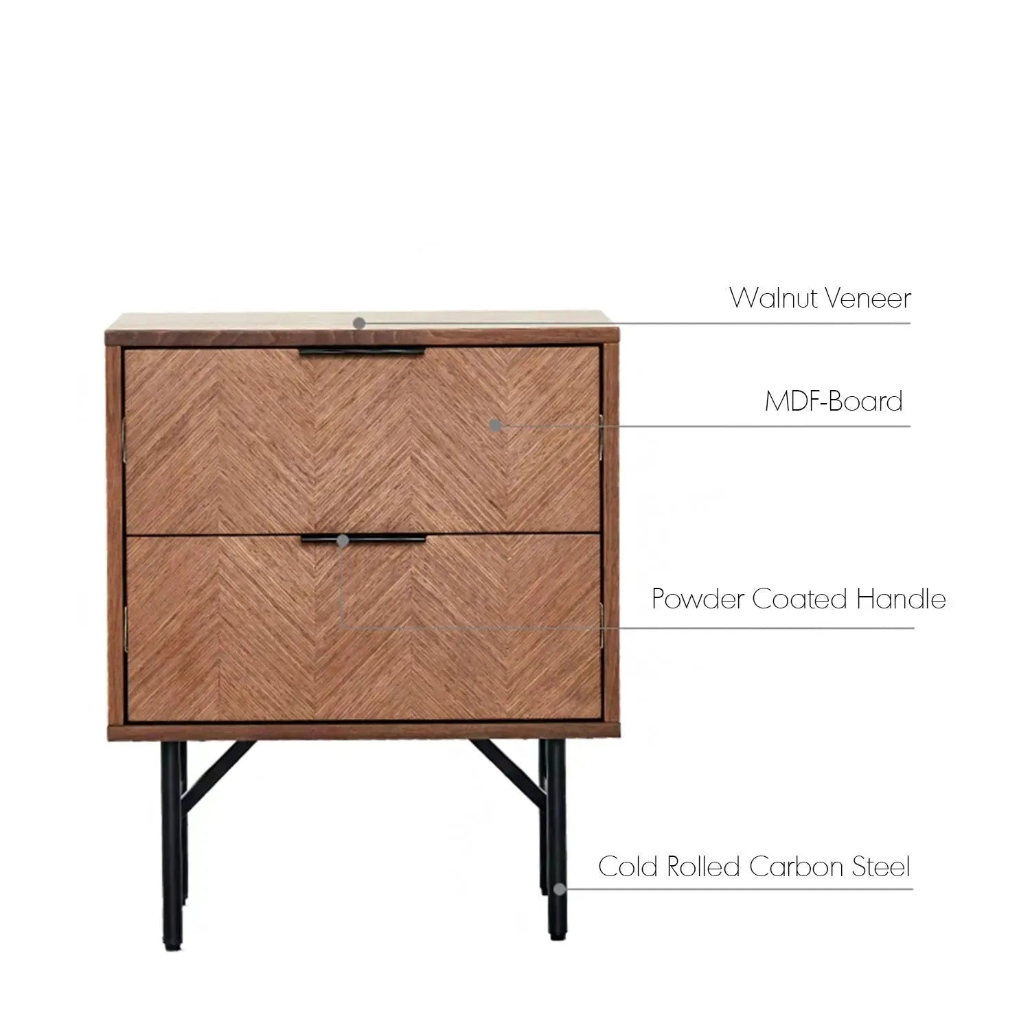 Walnut veneer wood is warm and elegant to blend perfectly with every kind of interior design theme. Cold-rolled carbon steel legs provide stability and durability, while the powder coating on handles brings a touch of contrast in style. Enjoy the compromise between aesthetics and functionality by adding this unique addition that serves its designated purpose while enhancing a general tone of your home.