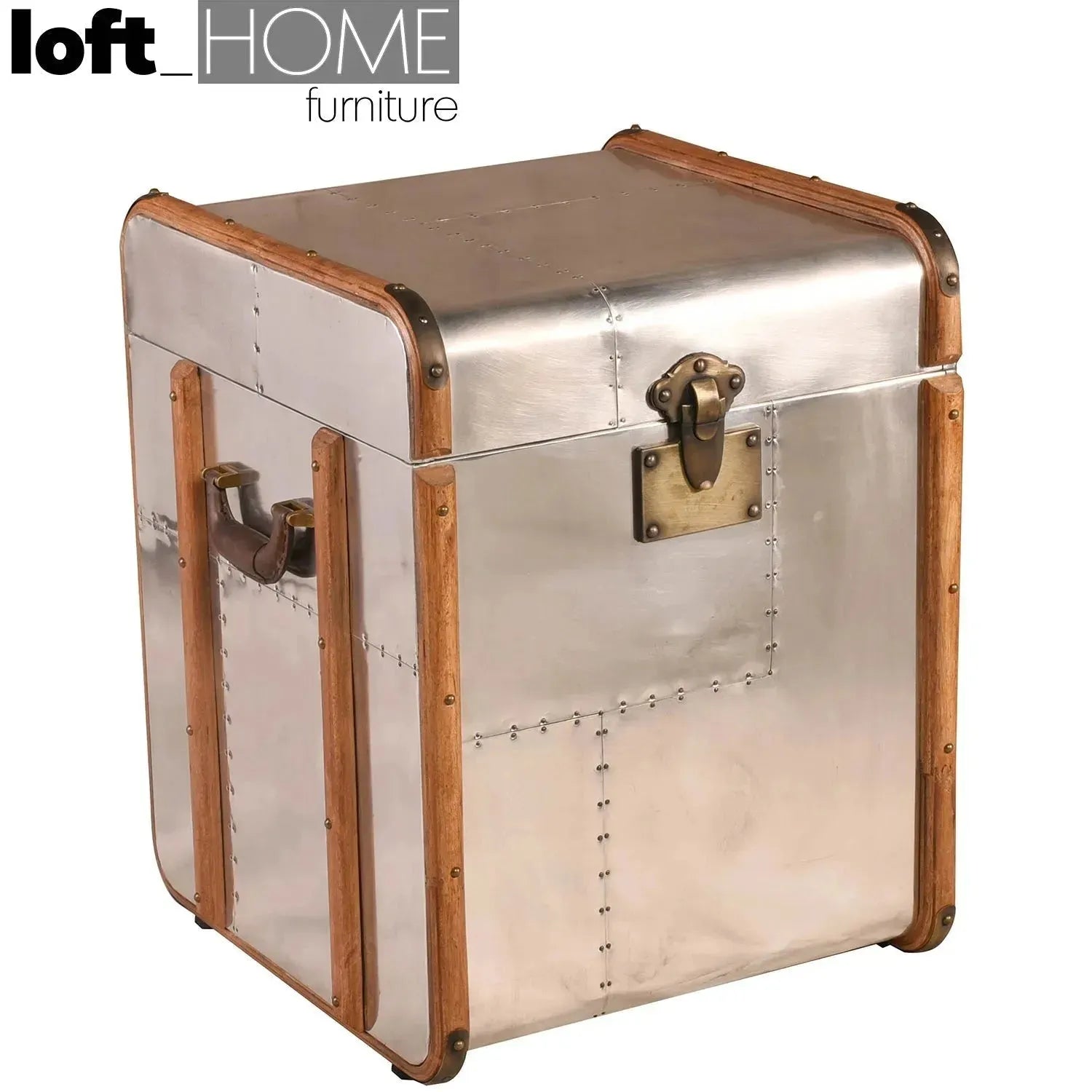 This Vintage Aluminum Side Table Storage Box is a work of versatile gadgetry for your living space. L470 x W510 x H610mm in size, it is a stylish bedside table and compact cabinet. The aluminum and magnesium alloy box is a tough choice. It has genuine leather handles for portability.