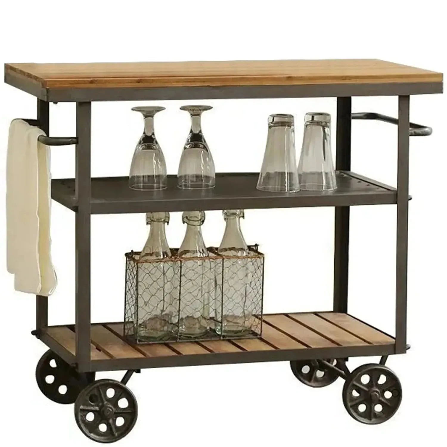 Material: Solid pine wood imported from New Zealand with matt black anti-rust steel frame and wheel legs.