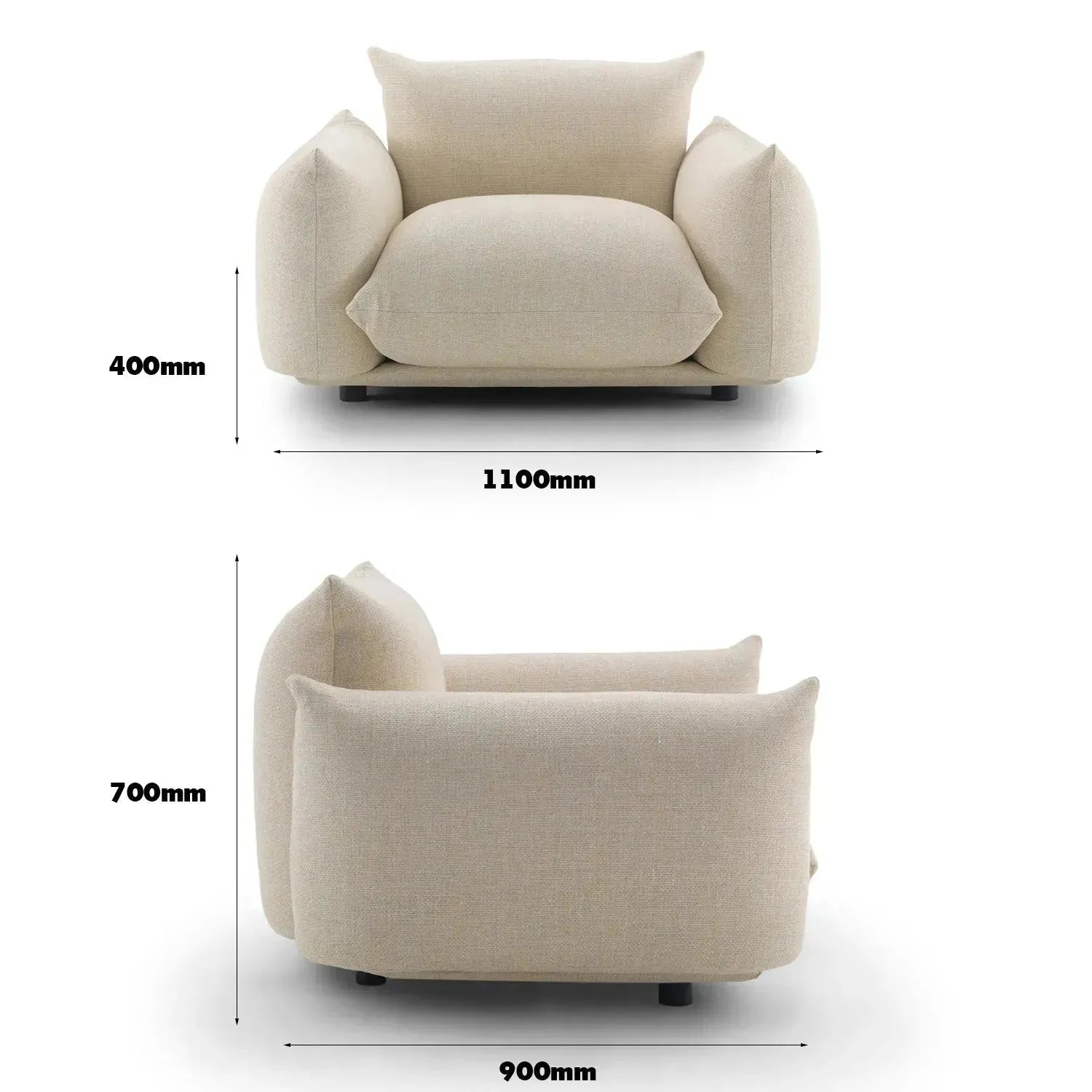 Cream Teddy Fabric 1 Seater Sofa MARENCO