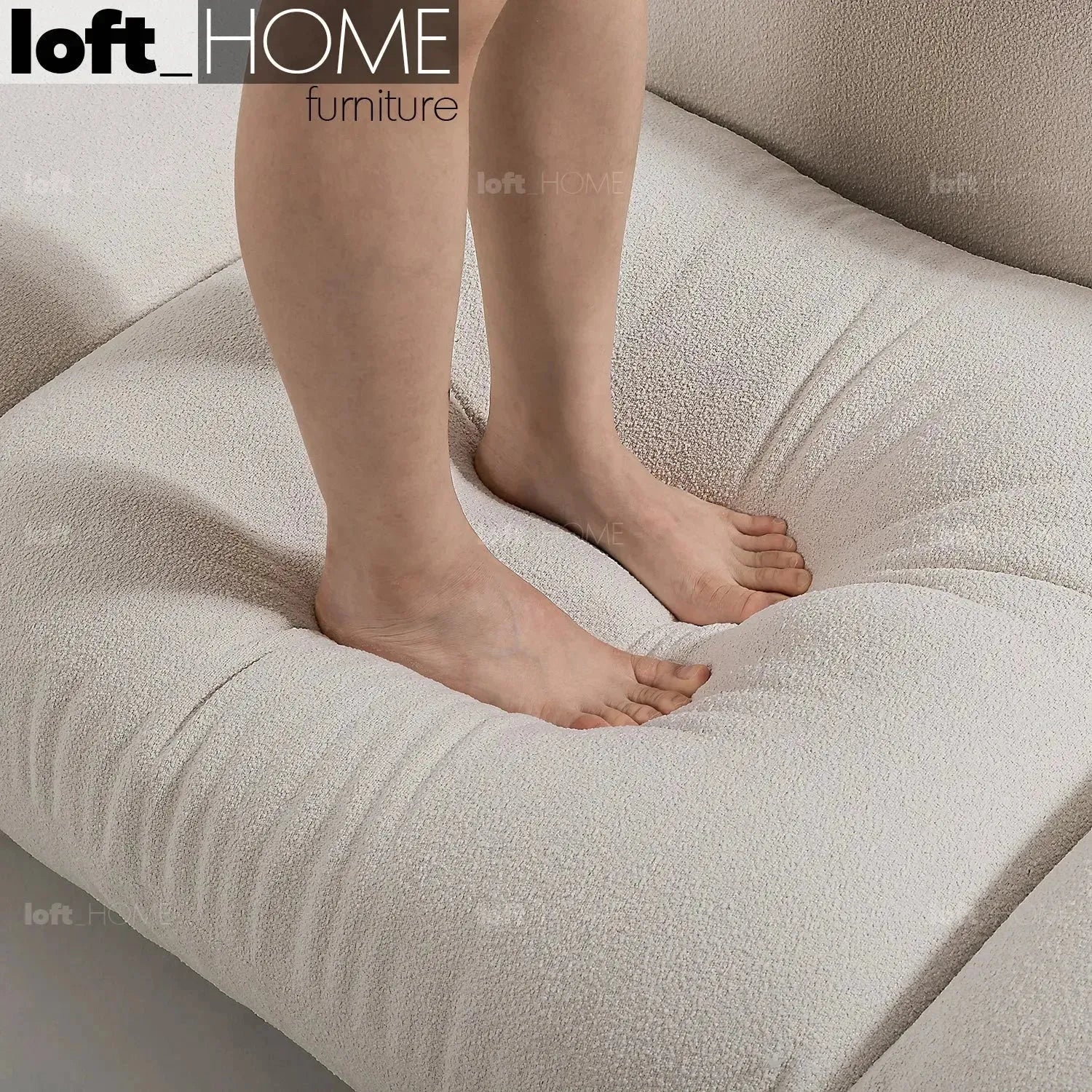 The sofa is covered in Boucle Fabric, available in a beautiful eighteen colors. Due to its flexibility, you can choose the perfect shade that matches your interior decor. |